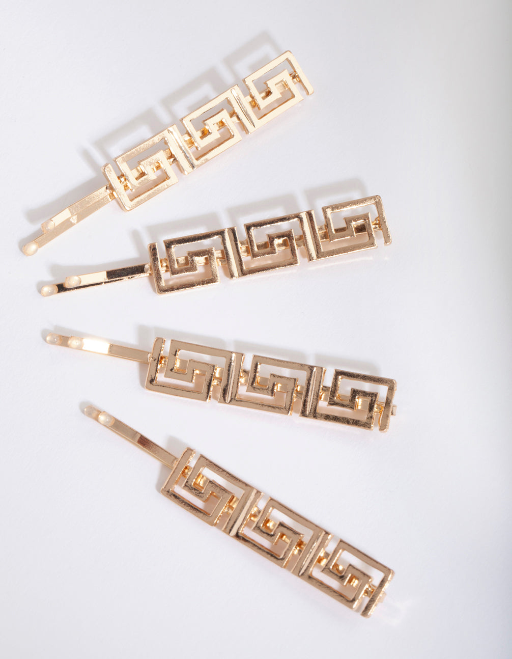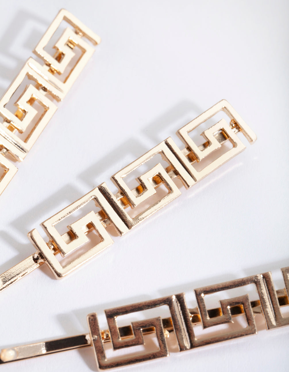 Gold hair accessories are perfect for those wanting to create a glamorous and warm occasion look. These funky geometric hair slides are an ode to Greek symbology and have a shiny gold-toned finish. Draw attention to your luscious locks with this hair clip pack.