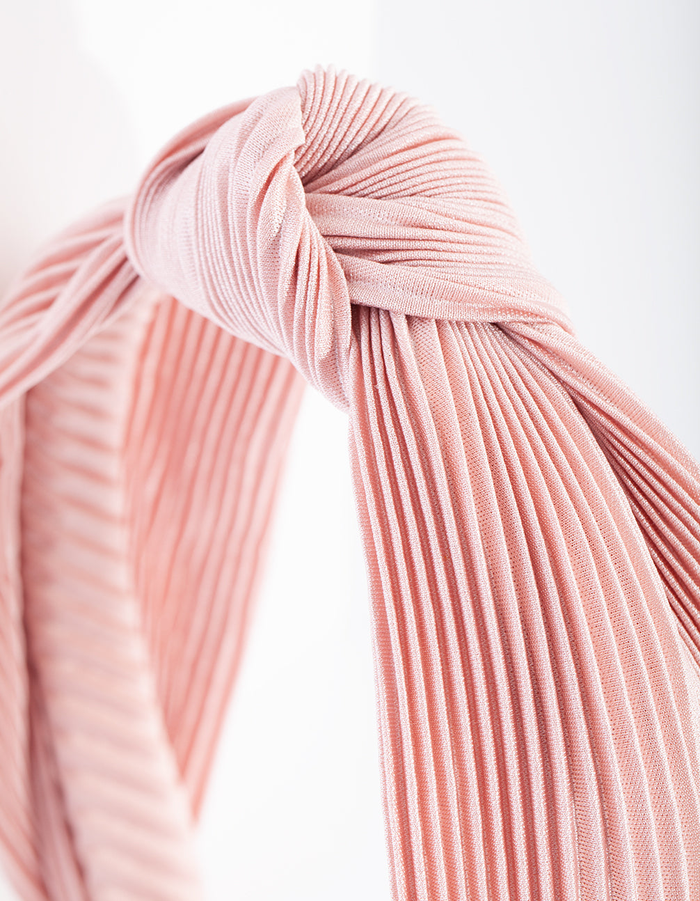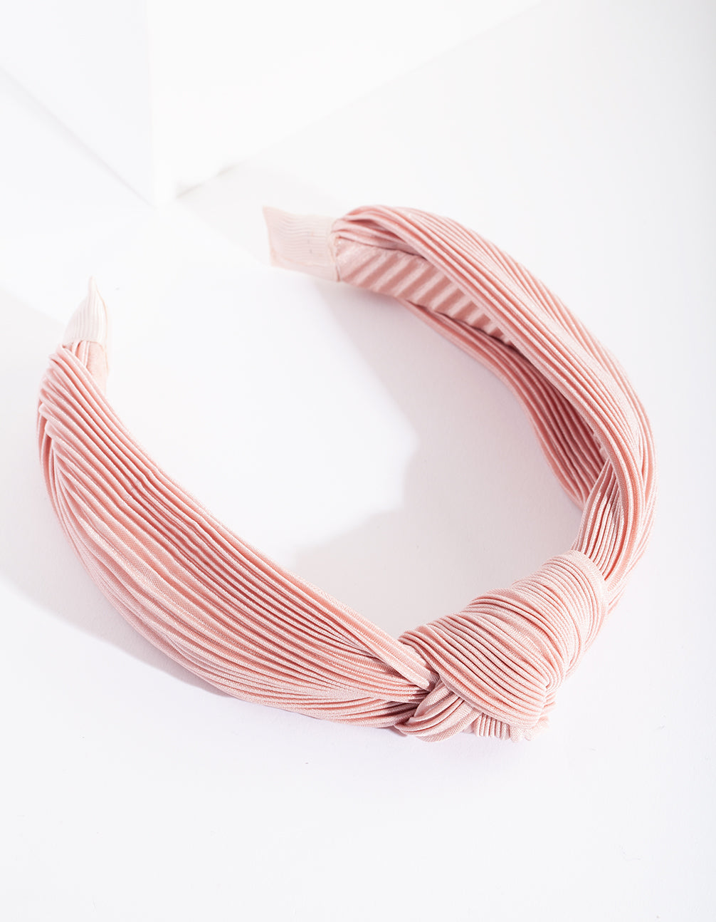 Headwear is a must-have accessory for any AM or PM affair. From sparkling crowns to printed scrunchies, our hair range makes the perfect outfit addition for any event. This headband comes in a metallic pink pleated fabric fashioned into a turban style.