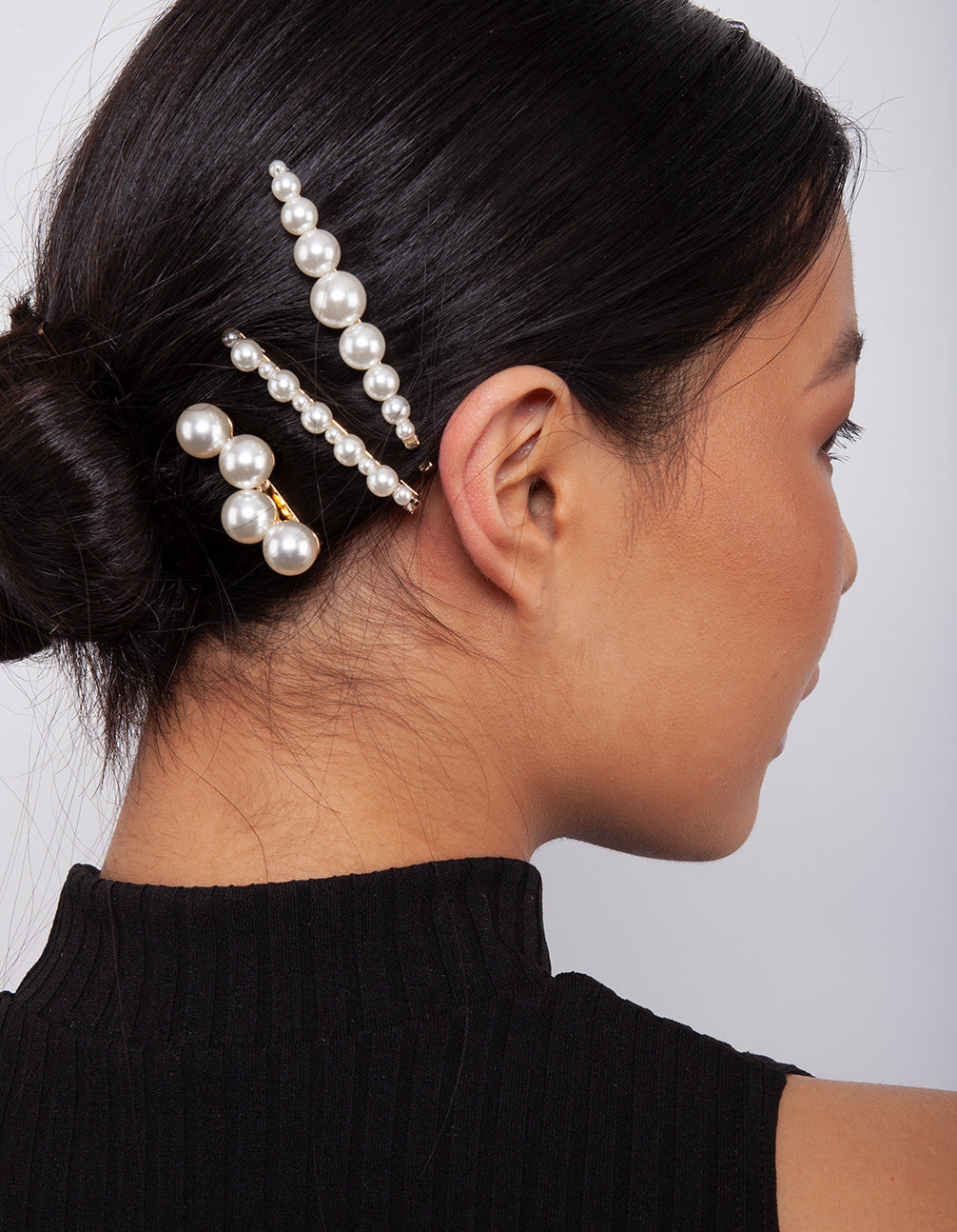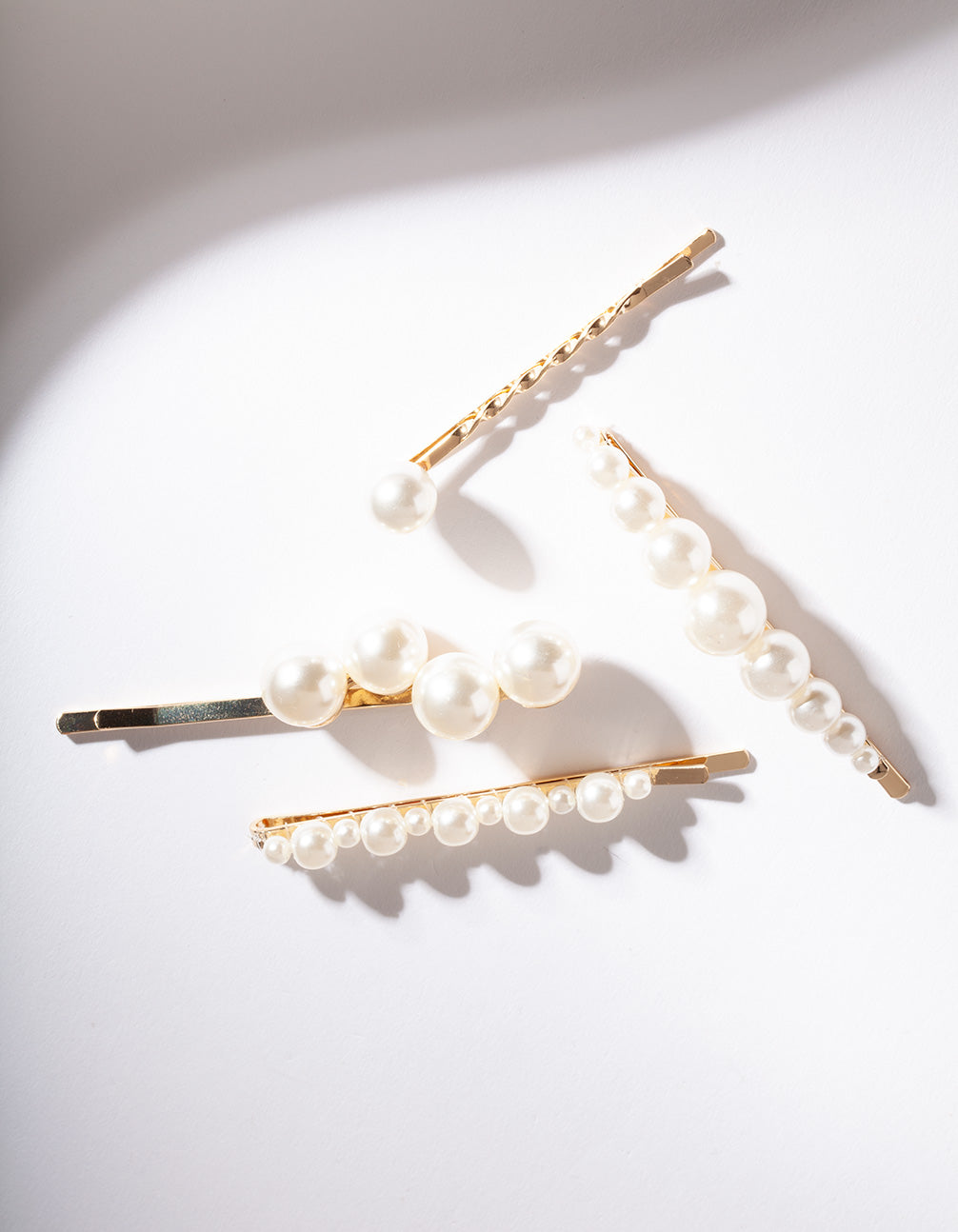 Playful and glamorous! Our hair accessories can dress up any outfit. This hair clip pack boast multi faux pearl designs on a gold-toned setting.