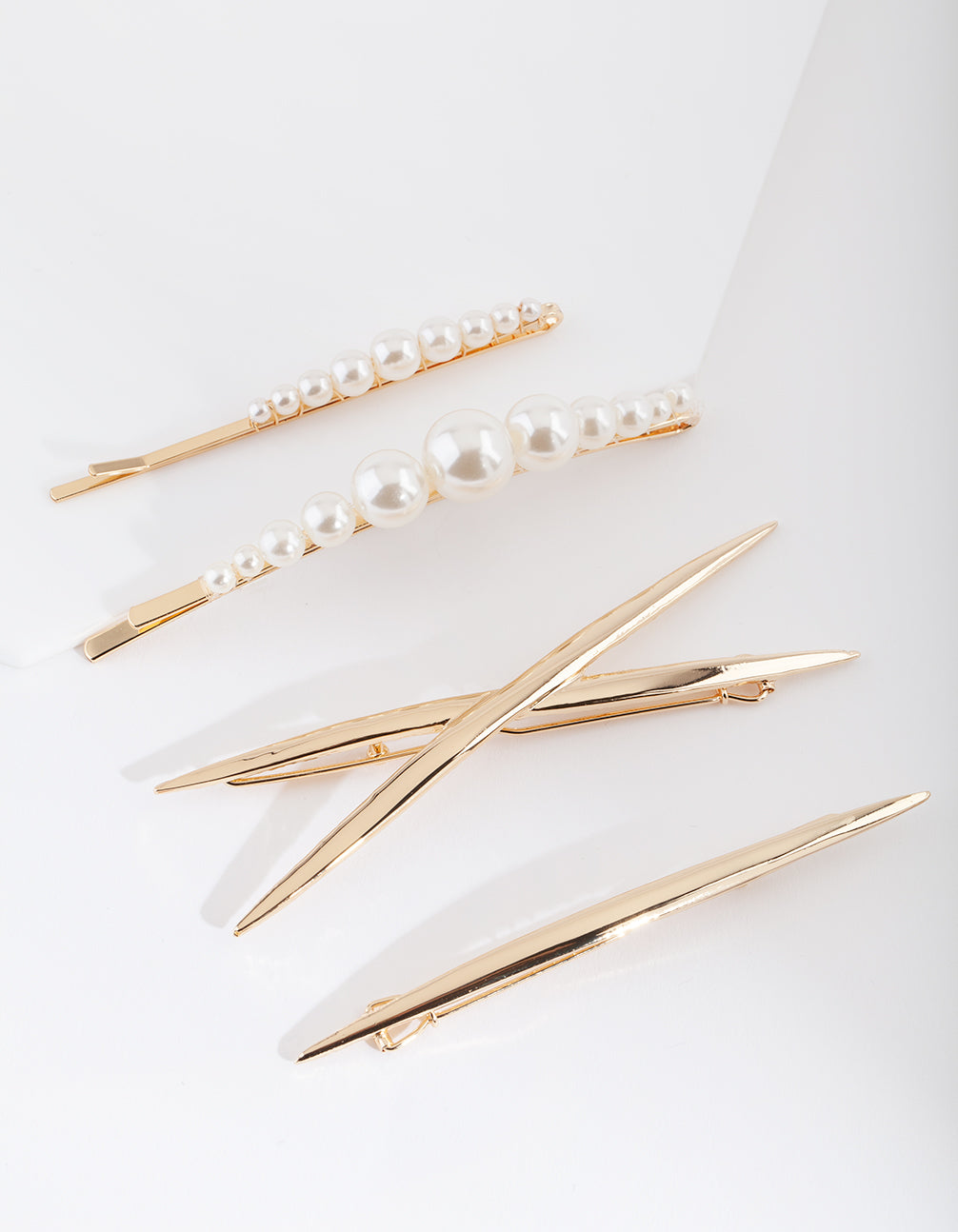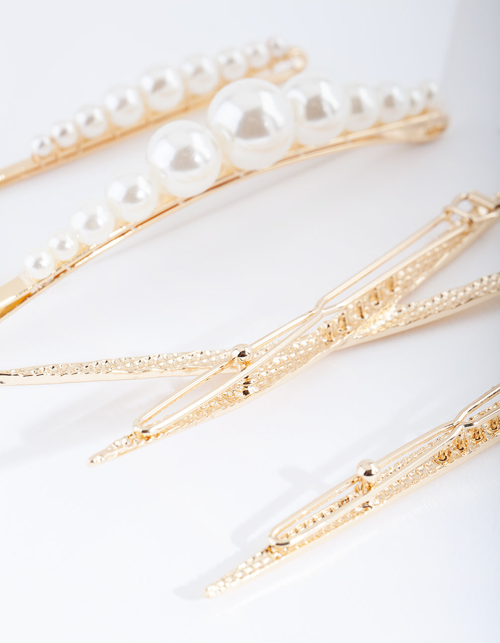 Whether you are heading to brunch, a wedding or just wanting to look glamorous for a party, this hair accessory is the perfect way to complete your event ensemble! This pack comes with a variety of gold-toned and pearl embellished styles.