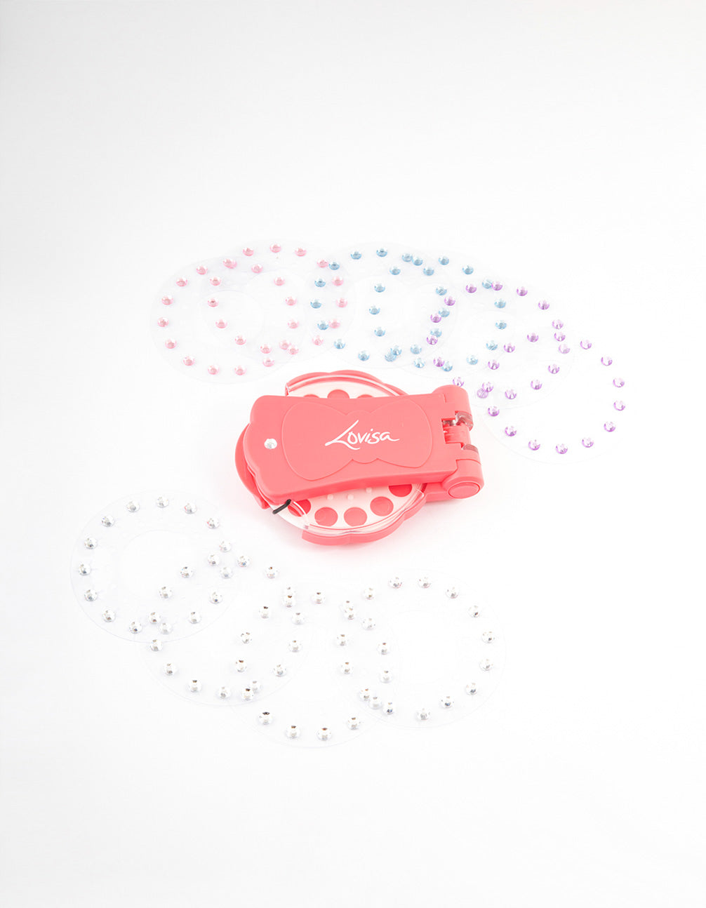 - Release the clear stamp cover in the centre of your stamp, then load your sheet of gems into the machine - making sure to align the holes of the disc to the stamp, gems facing the right way up.