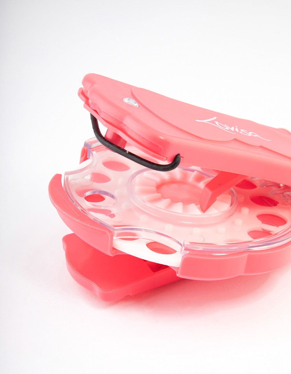 - To open your gem stamp, remove the black elastic band and lift the pink leaver upwards.