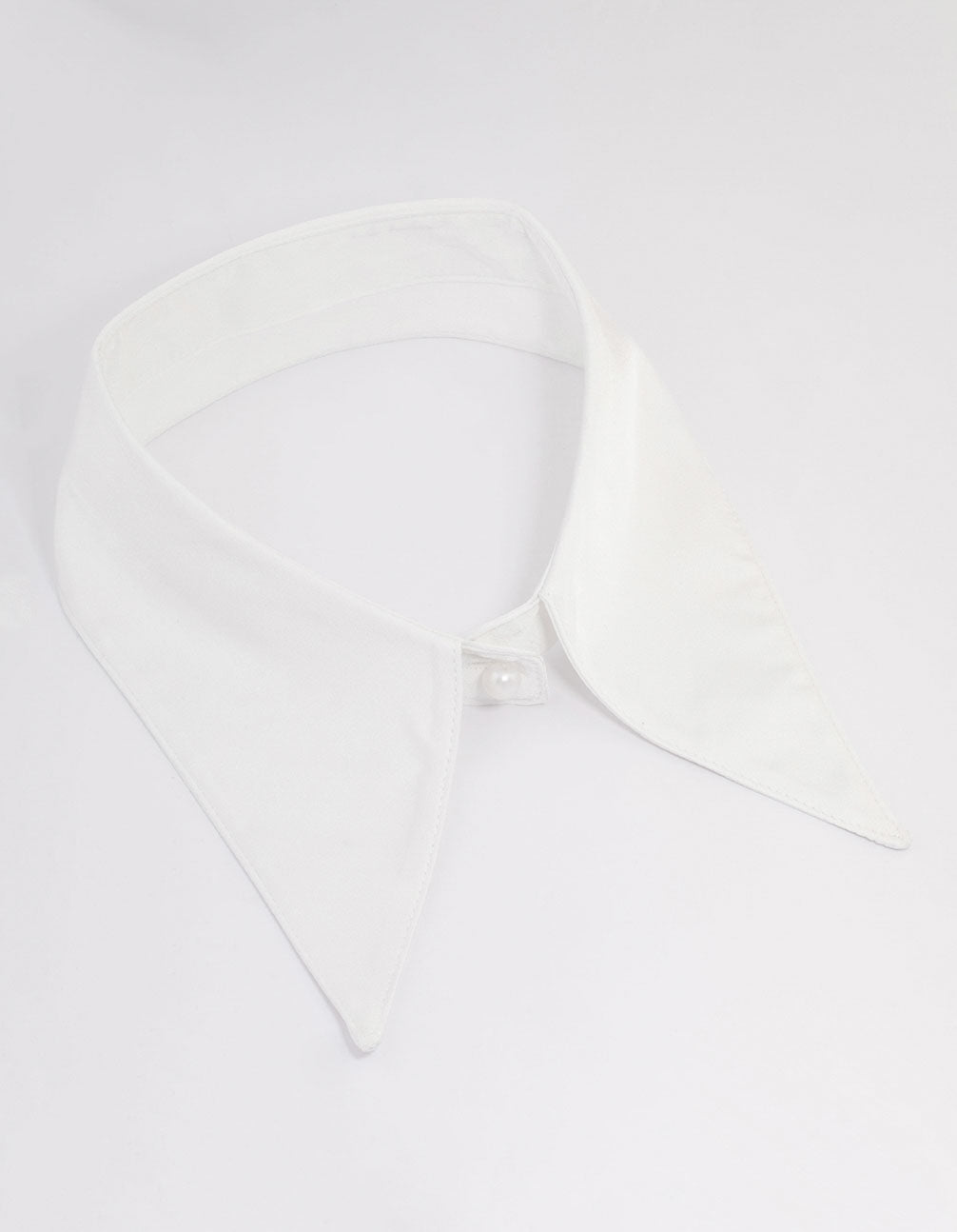 This white fabric collar necklace is a versatile styling piece, perfect for elevating your look. Style this white pointed collar necklace over a knit or t-shirt for a layered appearance.