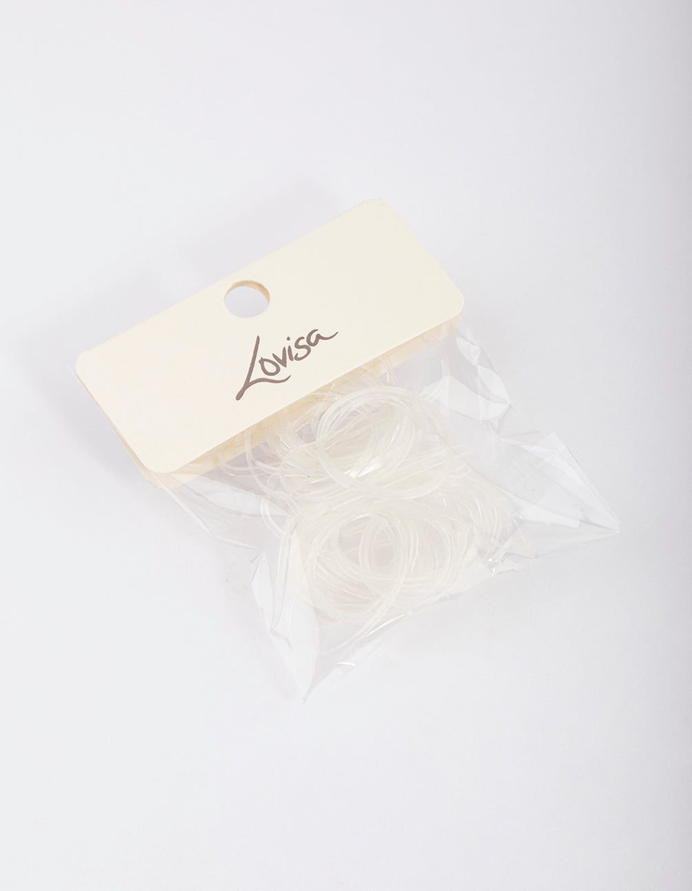 Never lose your hair elastics again with this sixty pack of clear, mini hair ties! Keep a pack in your car, your handbag and your vanity.