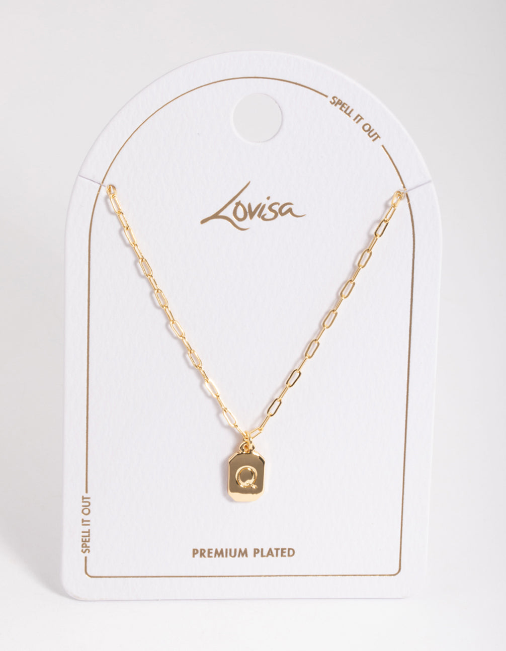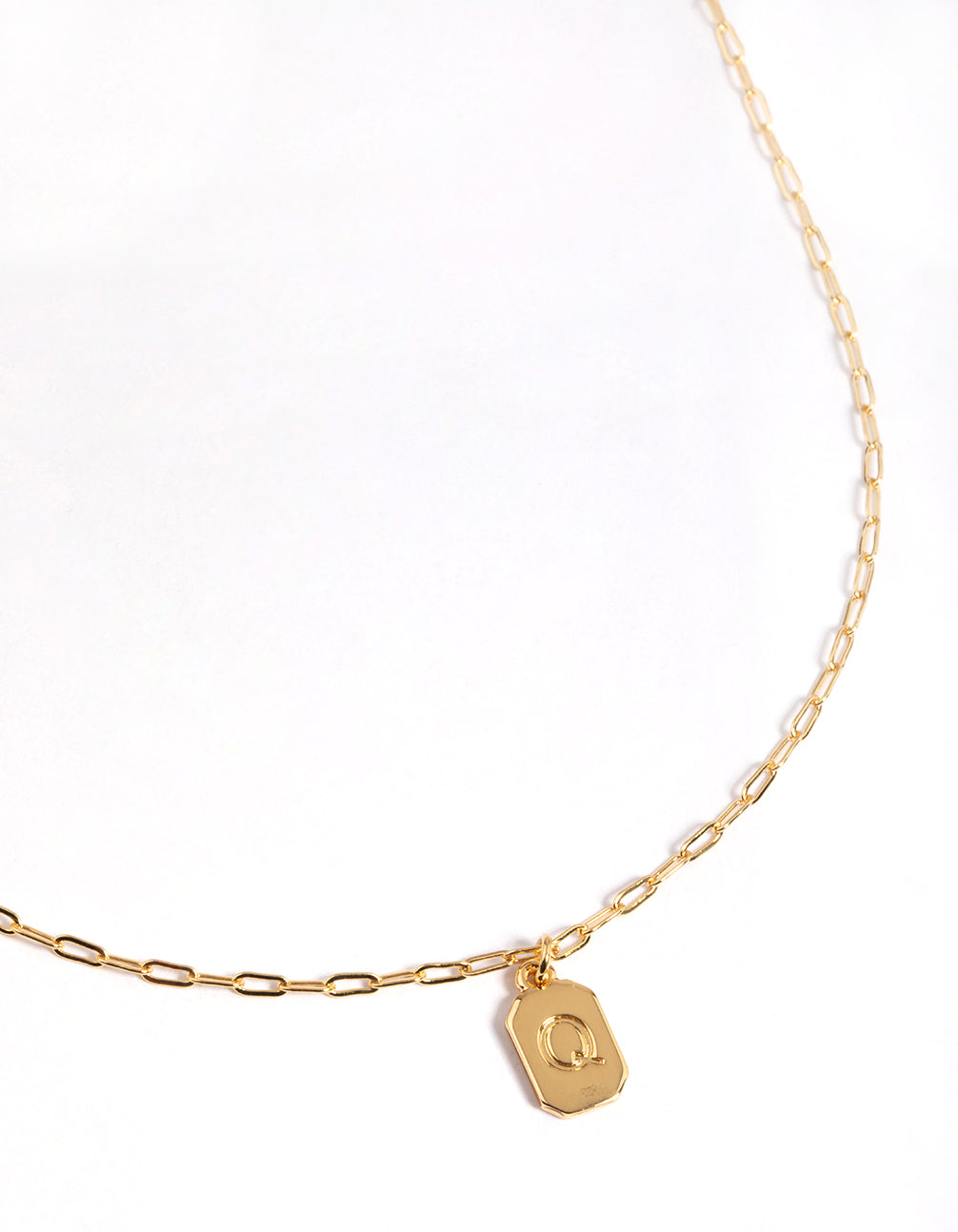 Gold Plated Letter Q Rectangle Pendant Necklace