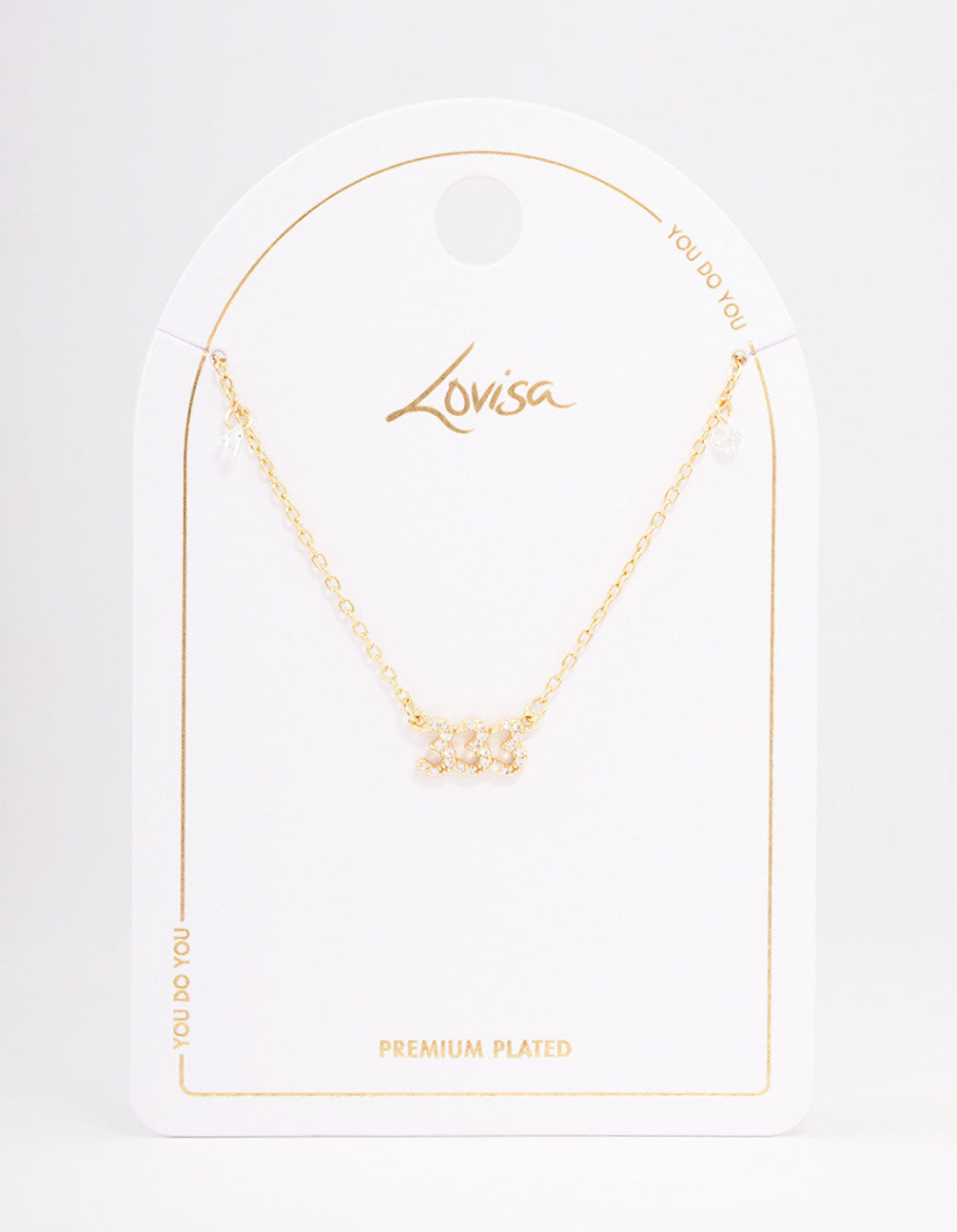 Gold Plated 333 Angel Number Cubic Zirconia Pendant Necklace