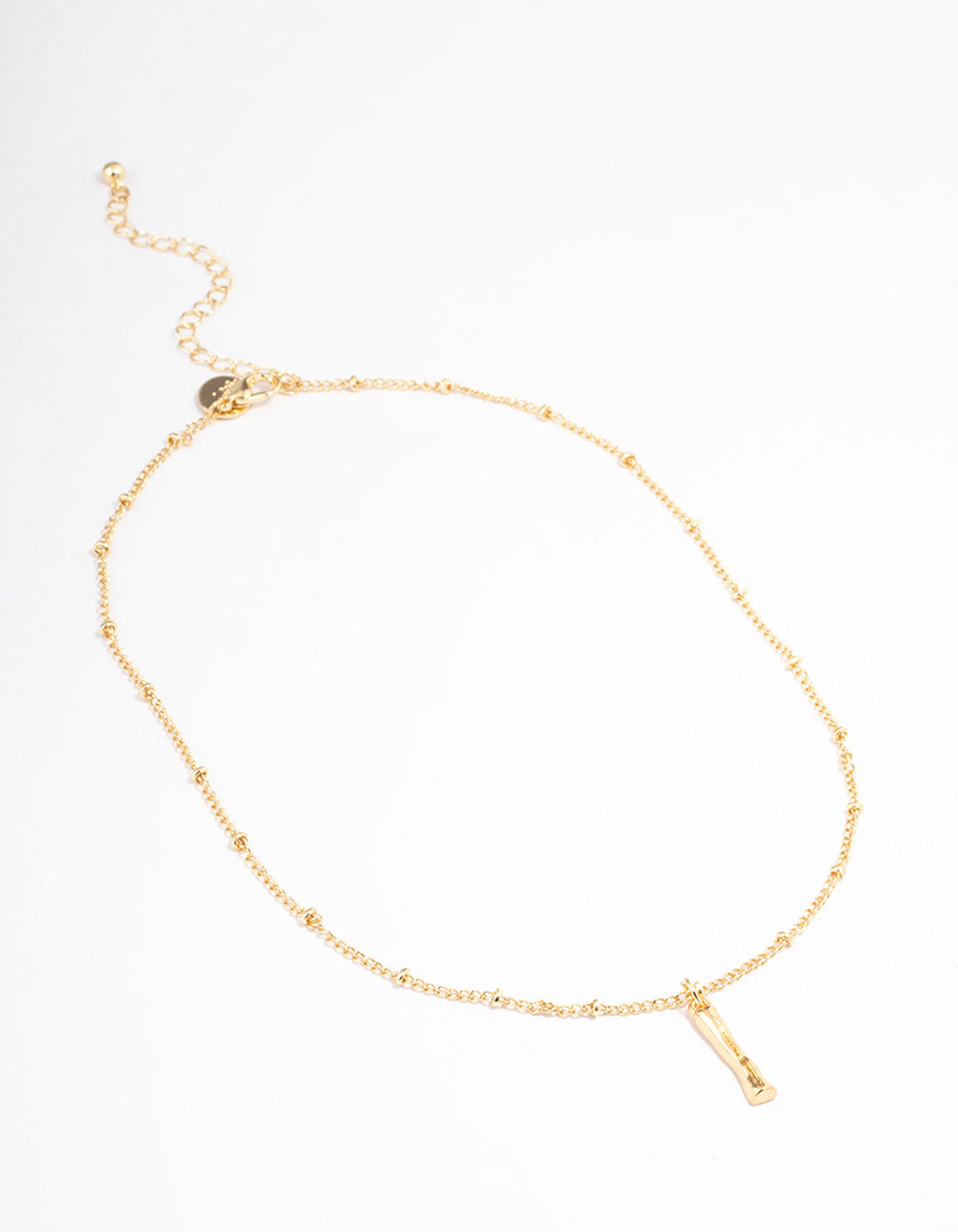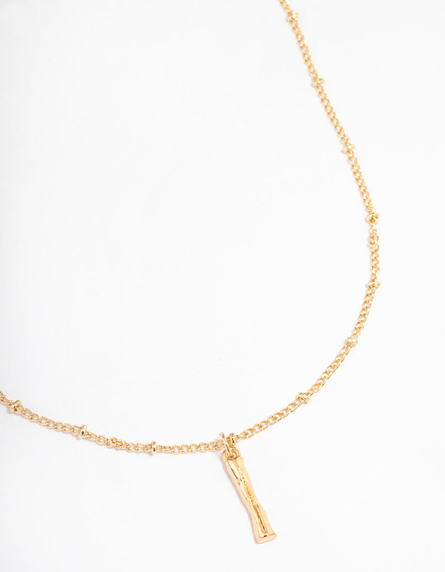- This letter 'I' initial necklace is made with real gold plating and features an intricate, bamboo-inspired texture for a unique finish. Style this necklace with a zodiac ear stacker for a curated finish.