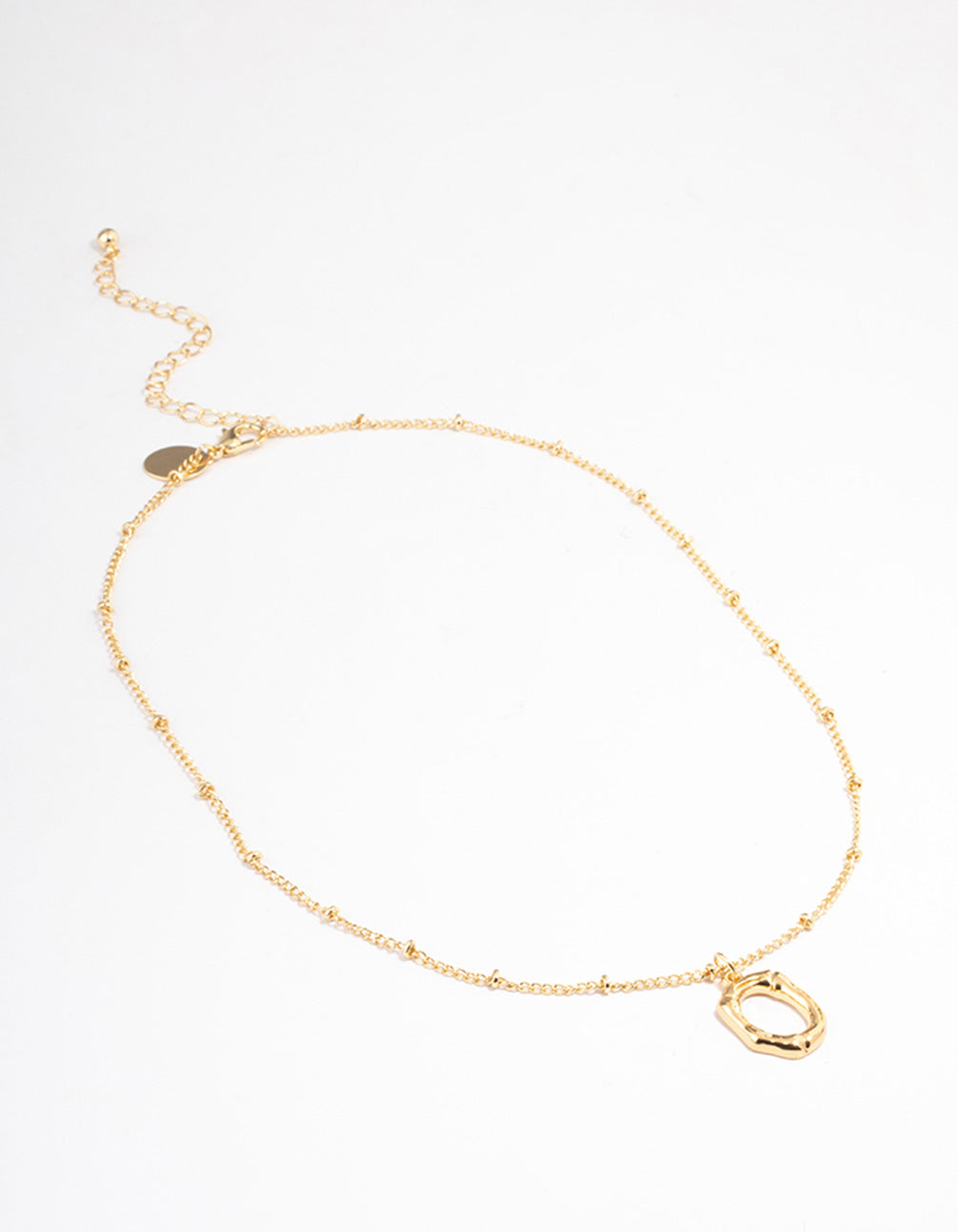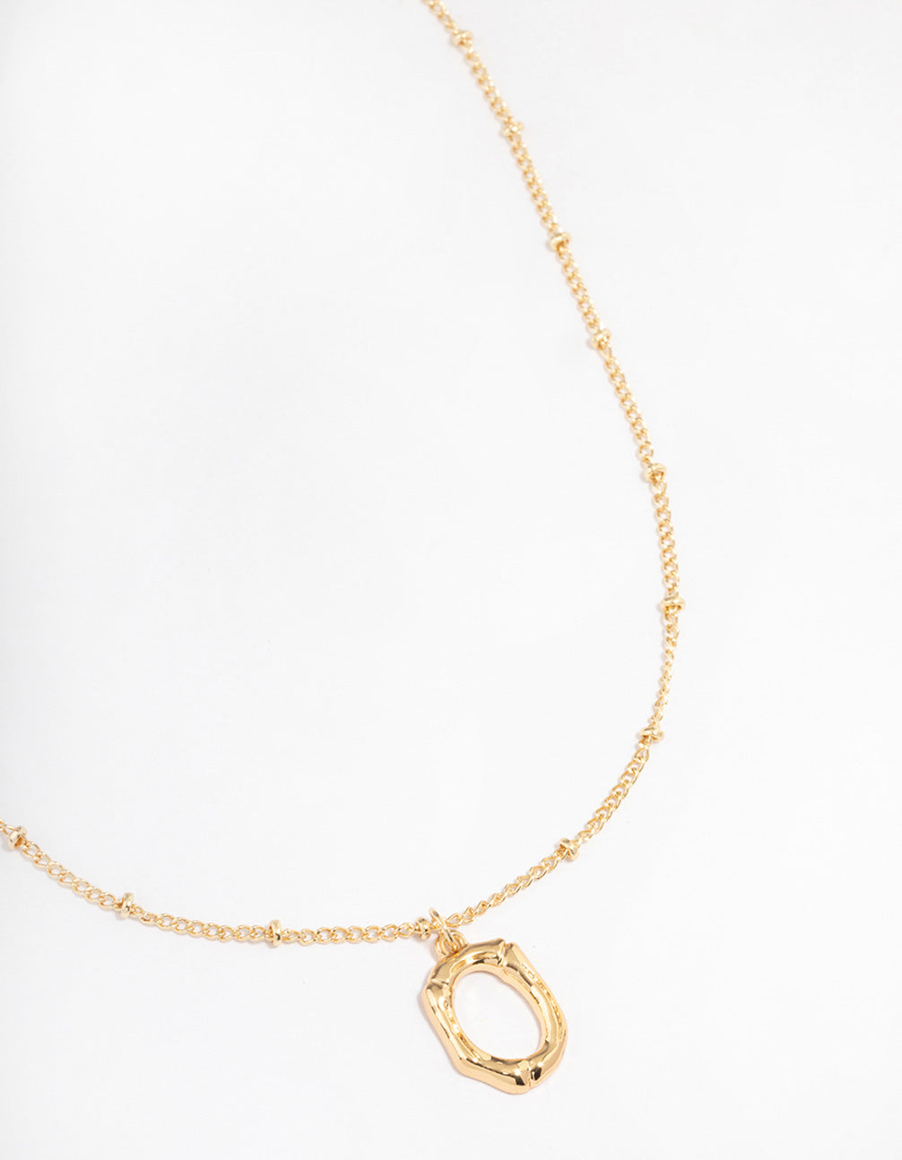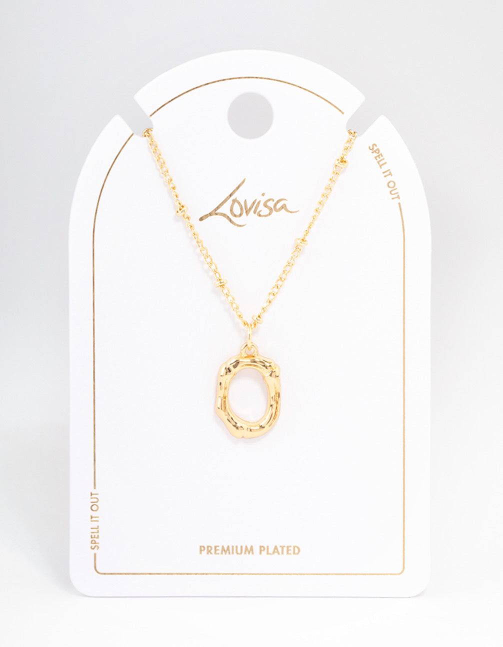 - This letter 'O' initial necklace is made with real gold plating and features an intricate, bamboo-inspired texture for a unique finish. Style this necklace with a zodiac ear stacker for a curated finish.