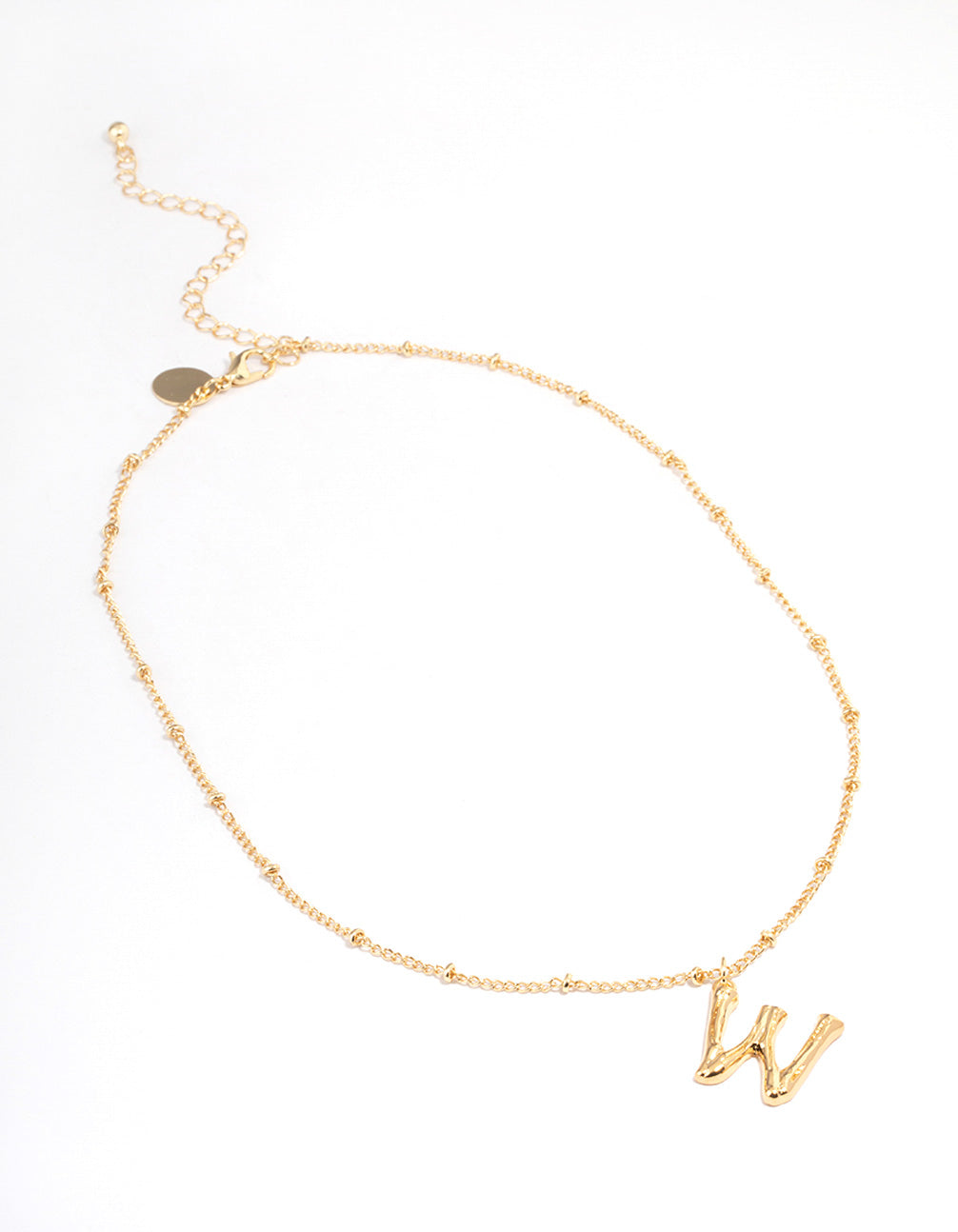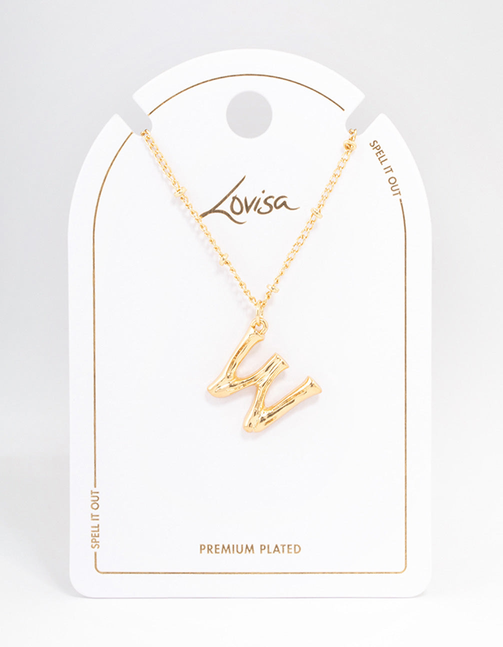 Letter 'W' Gold Plated Bamboo Initial Necklace Letter 'W' Gold Plated Bamboo Initial Necklace Letter 'W' Gold Plated Bamboo Initial Necklace