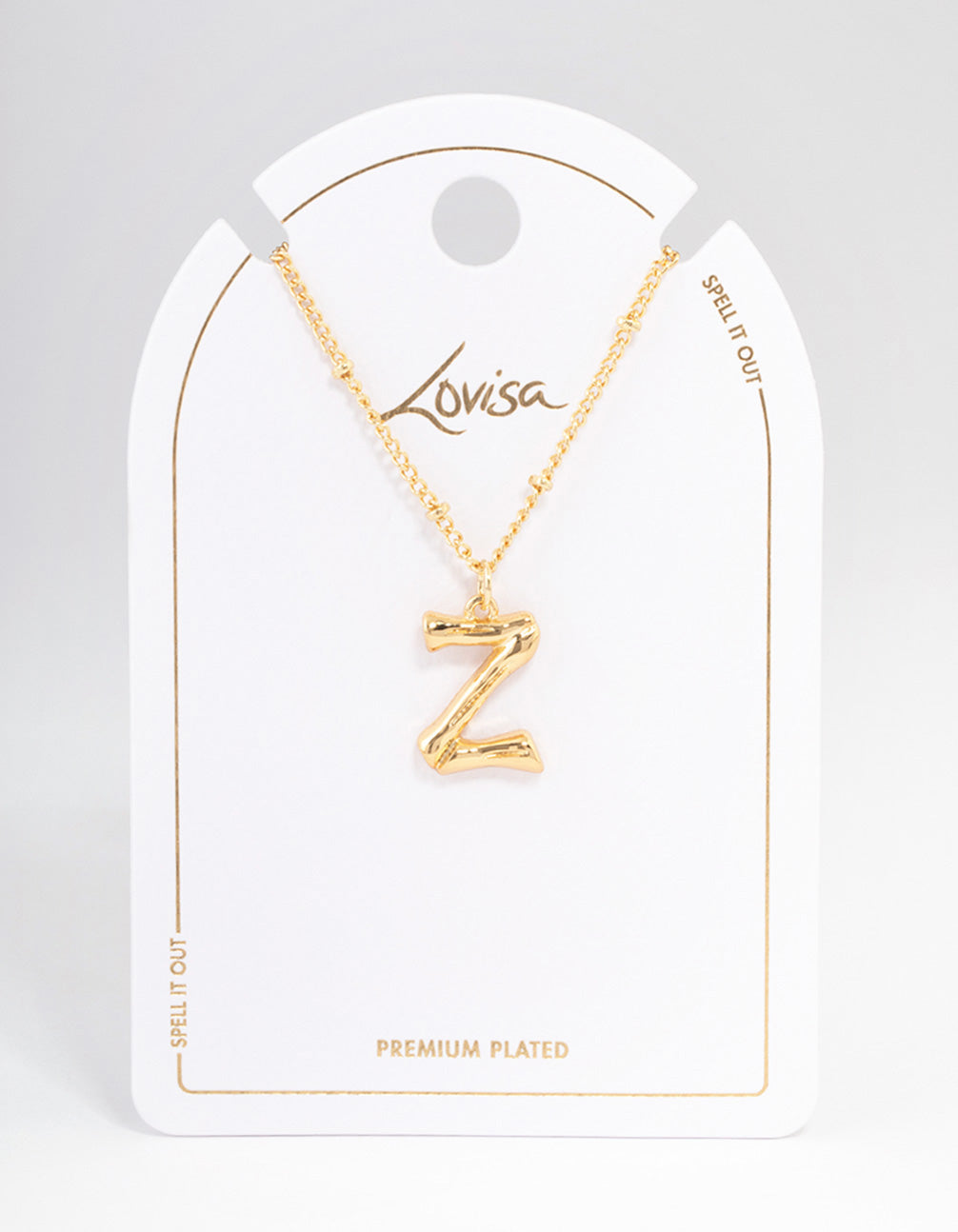 - This letter 'Z' initial necklace is made with real gold plating and features an intricate, bamboo-inspired texture for a unique finish. Style this necklace with a zodiac ear stacker for a curated finish.