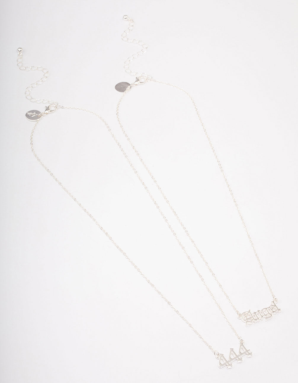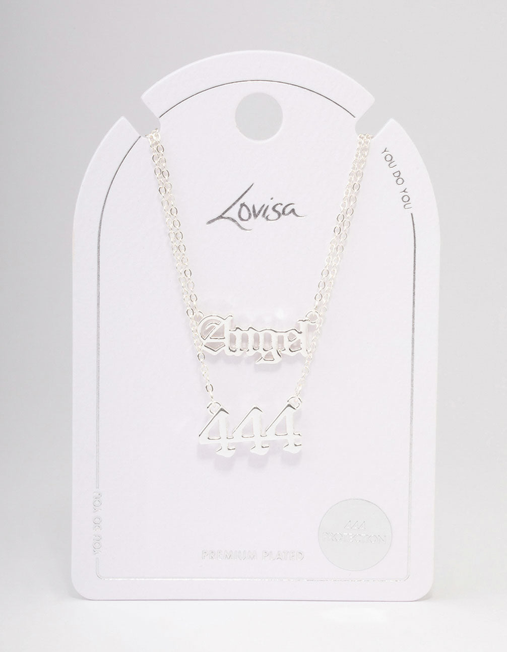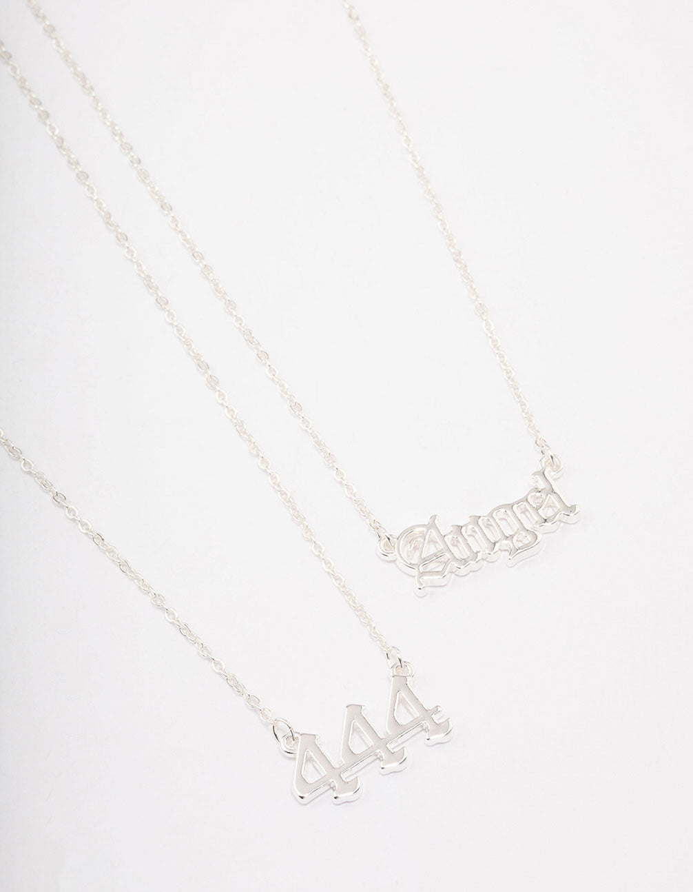 - This silver plated necklace pack features a '444' and 'angel' pendant. Repetitions of 4 are a symbol of protection! Wear these necklaces each and every day to channel good energy and protection into your life!