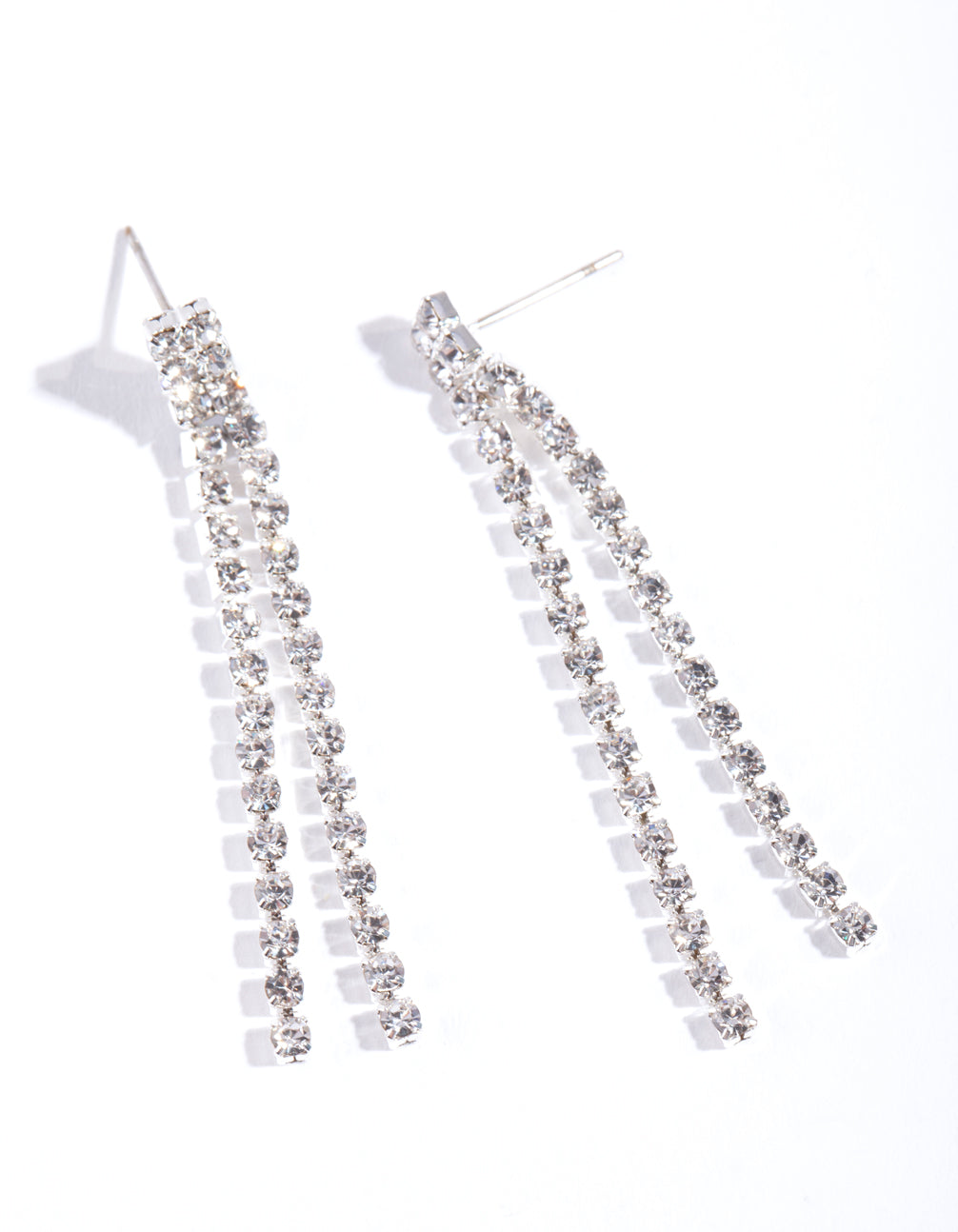 Sparkle bright! This exquisite pair of silver-toned earrings are adorned with a diamante embellished design. Elevate a casual outfit with this essential must-have earring set.