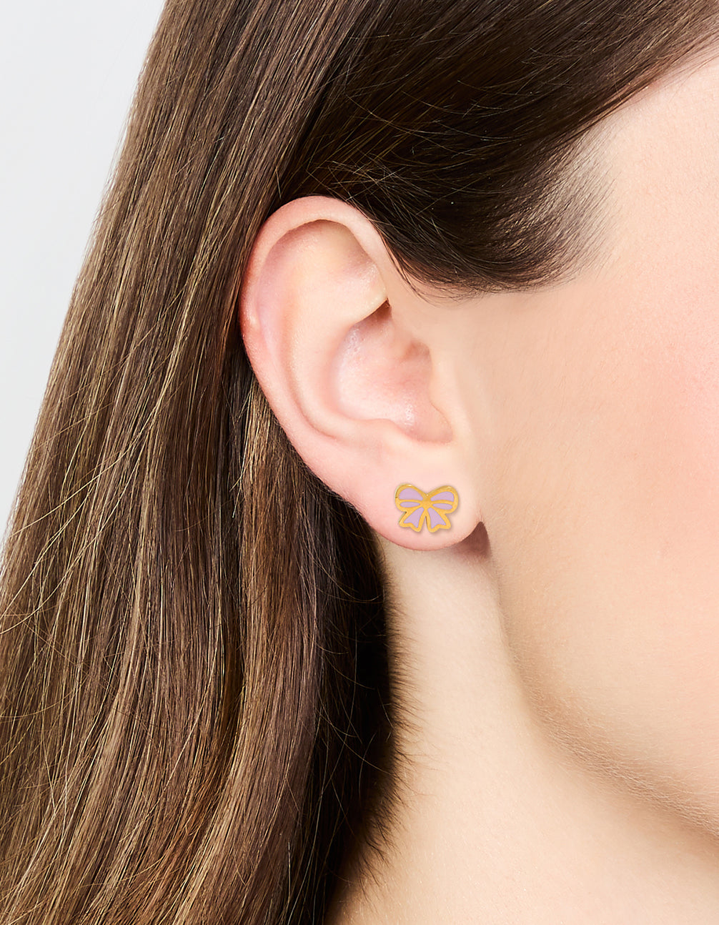 Kids Gold Plated Surgical Steel Bow Flat Back Earrings