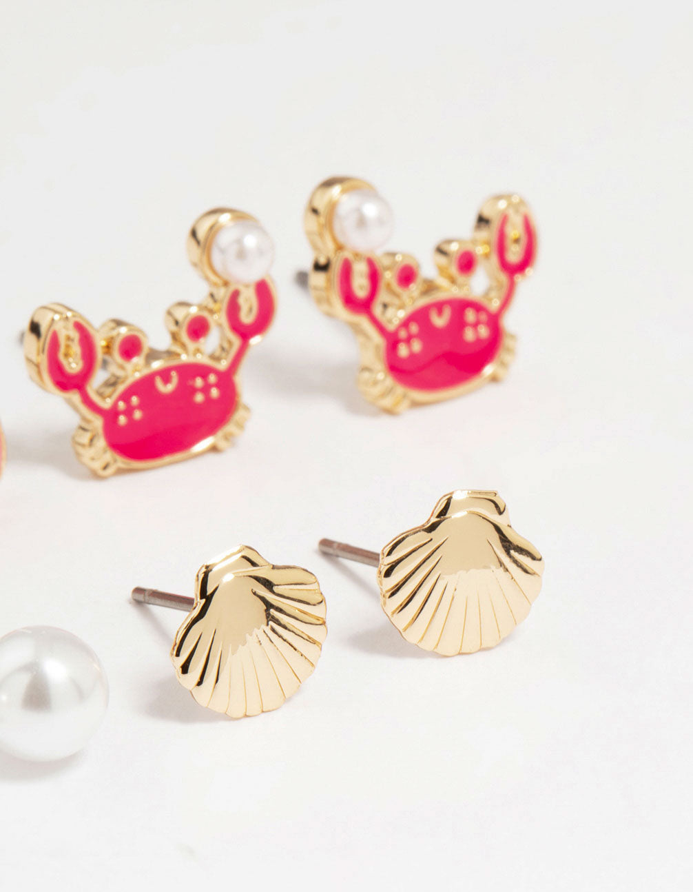 Kids Gold Sea Theme Stud Earrings 6-Pack