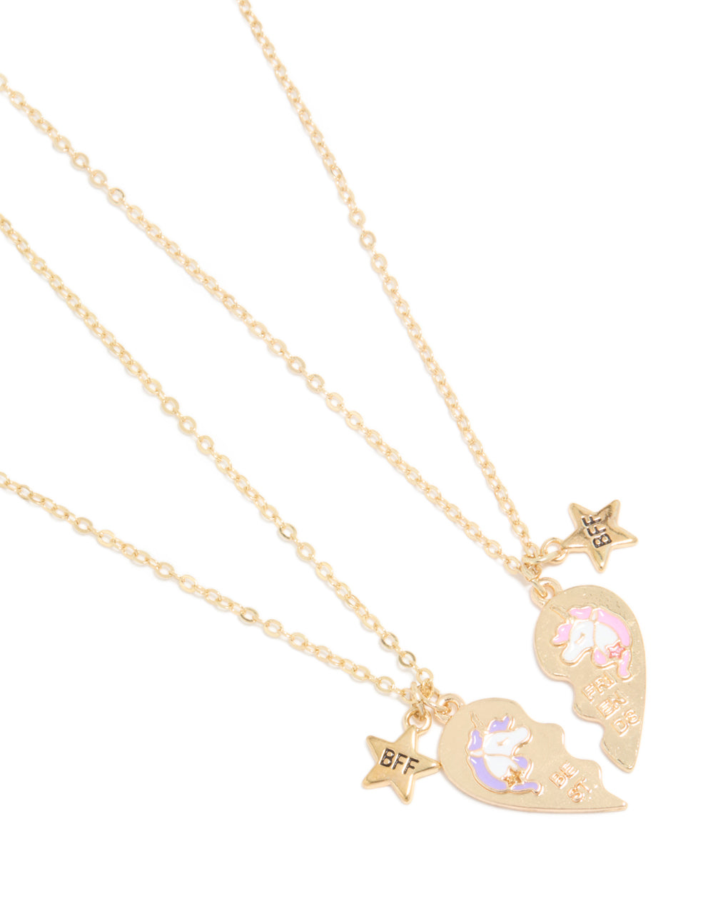 Kids Gold Unicorn BFF Heart Necklace Pack