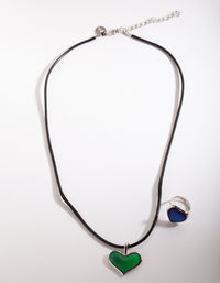 Kids Mood Heart Necklace & Ring Set