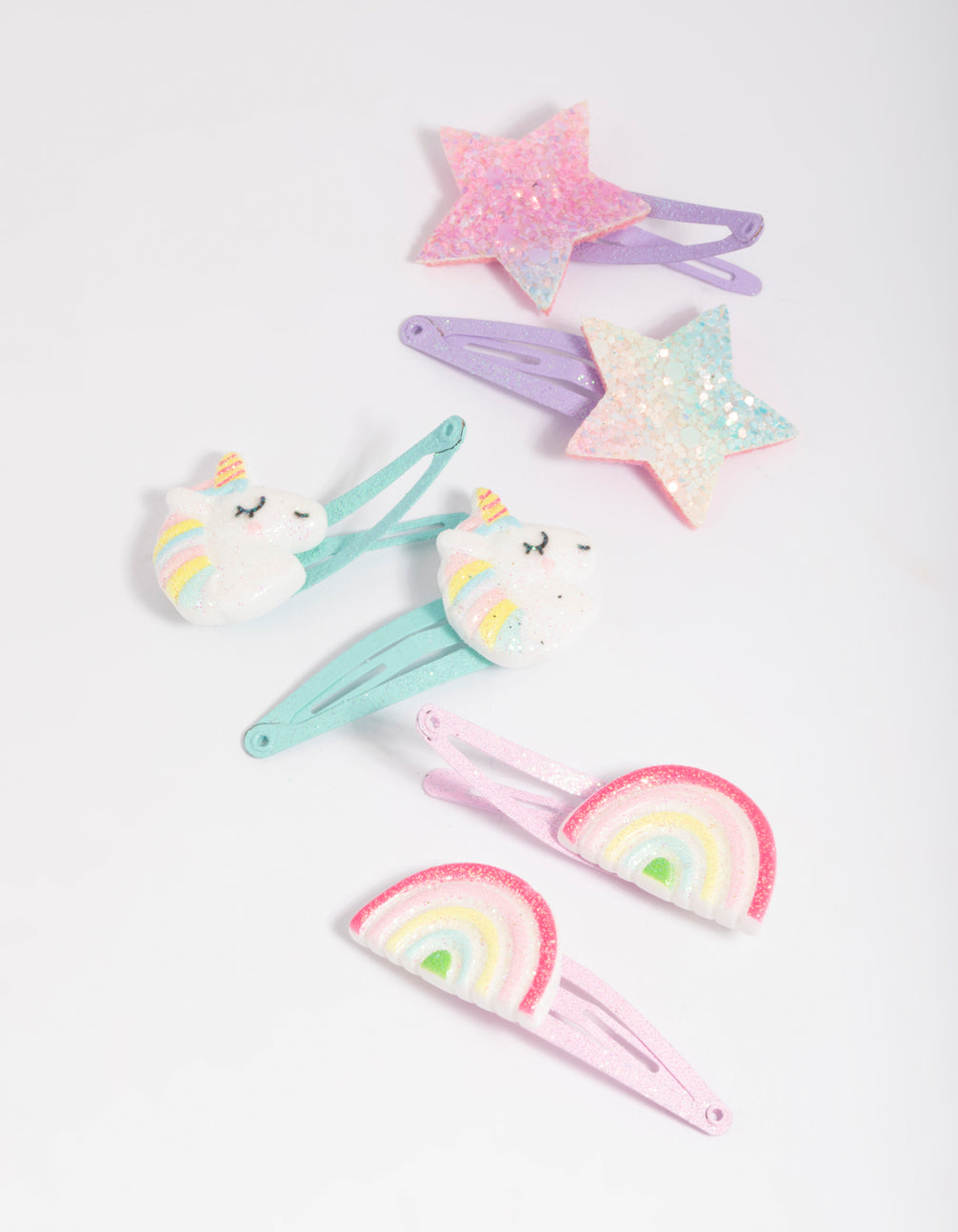 • Kids Rainbow Unicorn Snap Clips - link has visual effect only