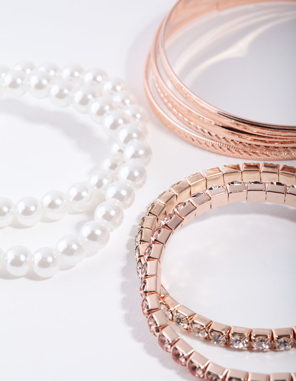 There is nothing more fun than dressing up in diamantes and pearls! This 8-pack of bangles and bracelets includes pearls, diamantes and rose-gold-toned bangles. Perfect for a dressier event or to glam-up a casual kid look!