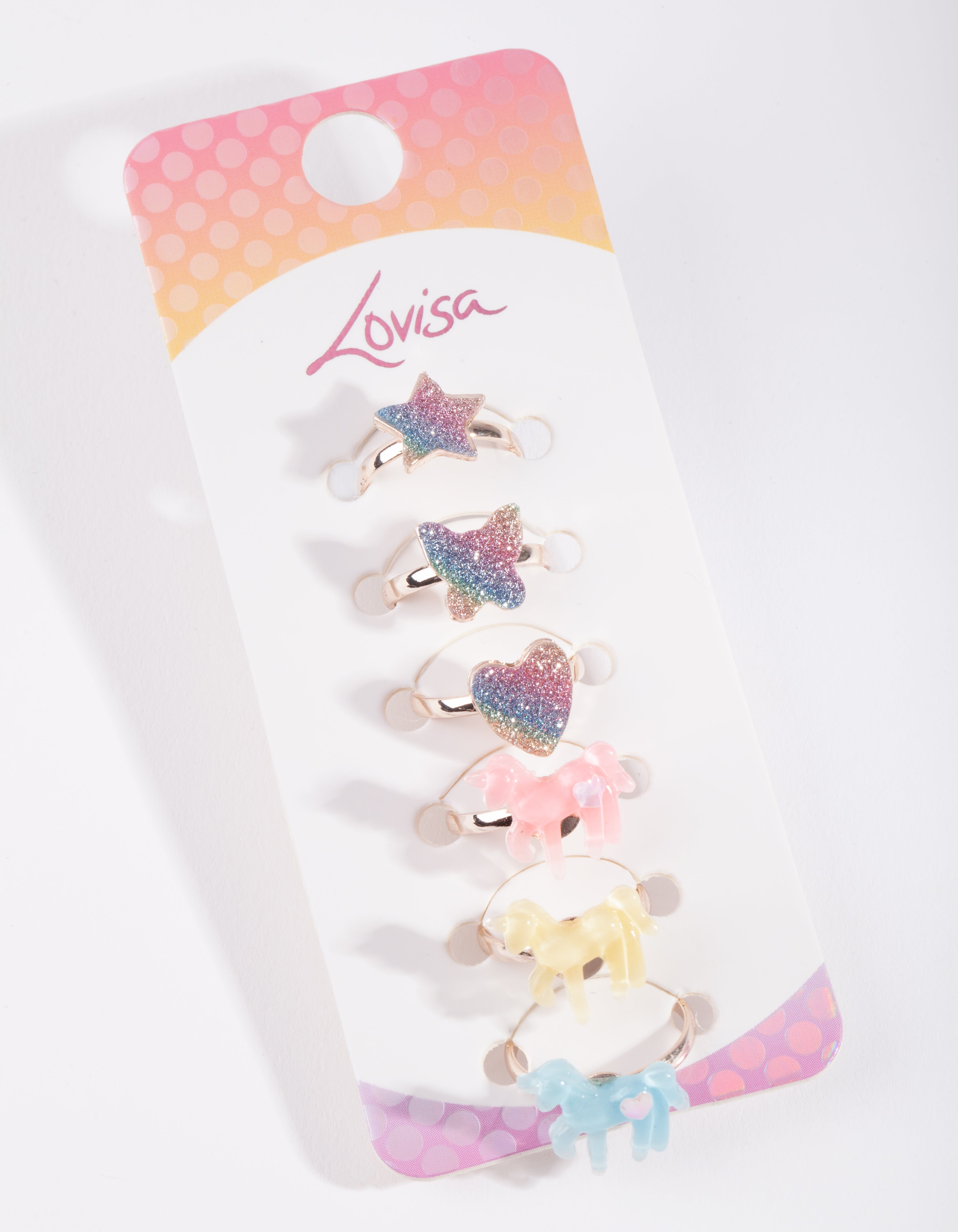 This range is perfect for little ones with big imaginations. This pack of 6 rings feature a rose-gold-toned glitter design, perfect for sharing.