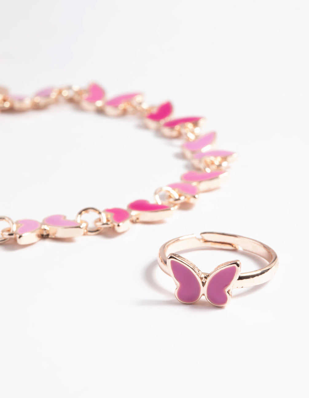 Kids Pink Mini Butterfly Bracelet & Ring Set