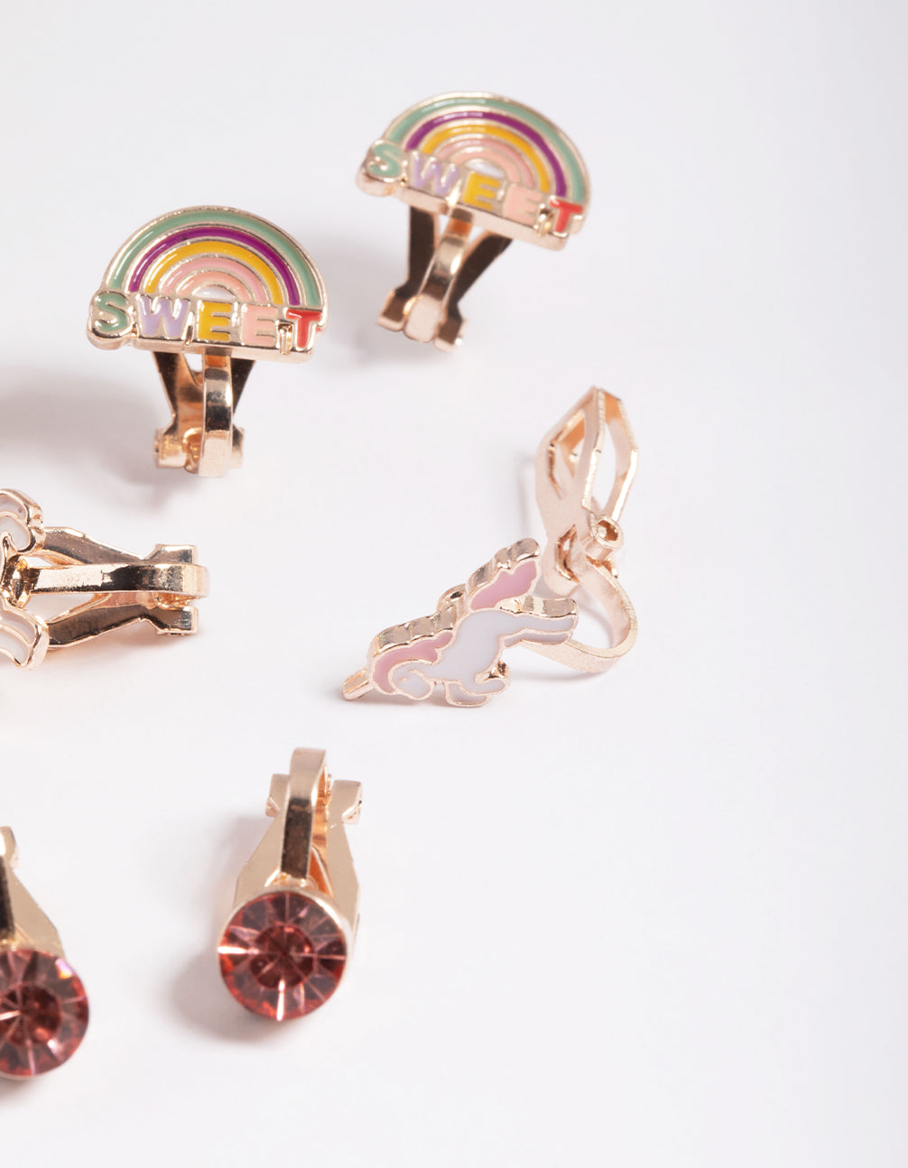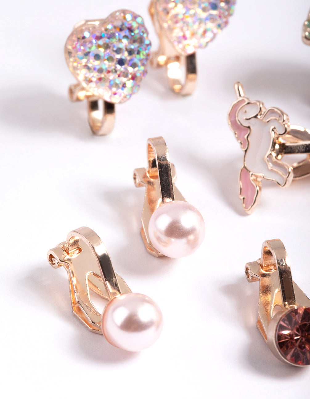 Kids Rose Gold Unicorn Clip On Earrings 5-Pack