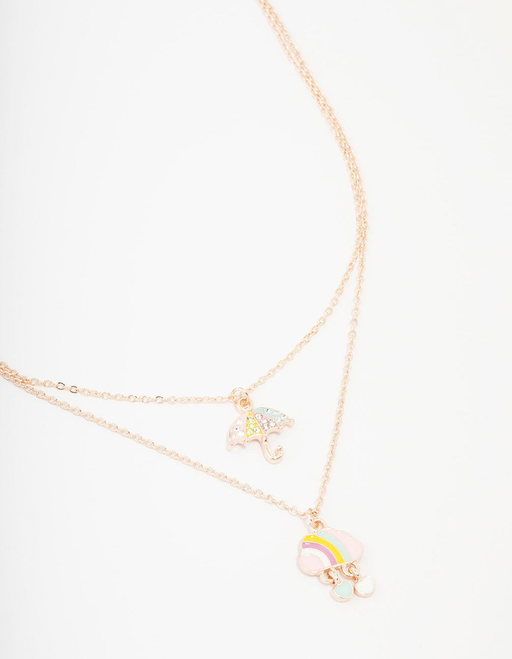 Kids Rose Gold Enamel Cloud & Rain Layered Necklace