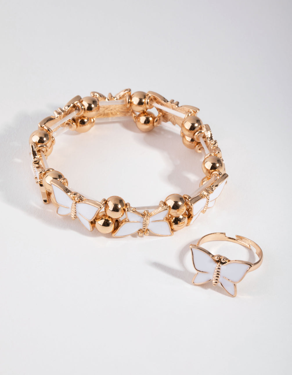 Kids Gold Enamel Butterfly Stretch Bracelet & Ring