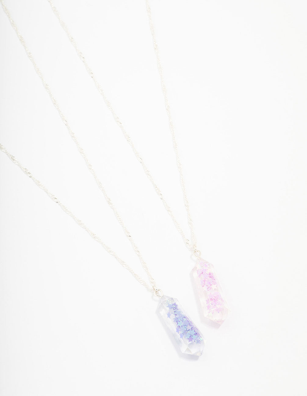 Kids Silver Glitter Crystal Pendant Necklace 2-Pack