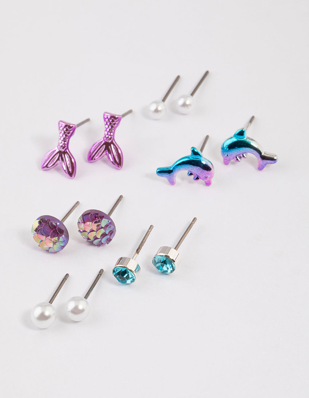 - These Kids Silver Dolphin Stud Earrings 6-Pack will make a splash in your little one's jewellery collection.