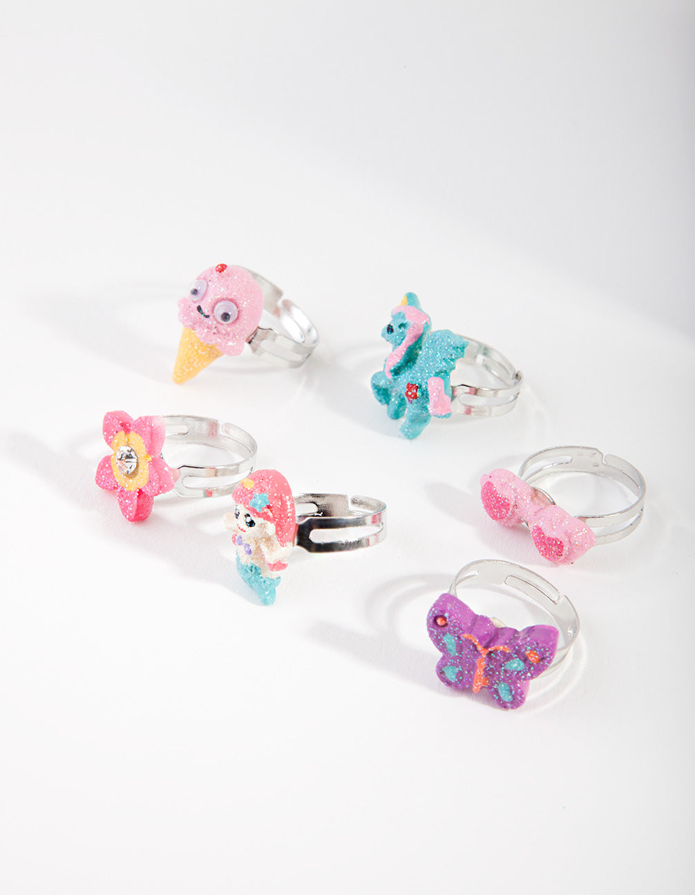 Kids Silver Mermaid & Unicorn Ring 6-Pack