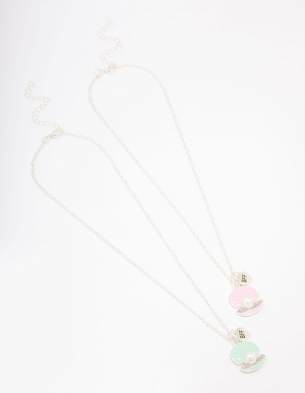 - This kids necklace set contains two individual pendant necklaces adorned with adorable seashell charms for a beachy inspired look.