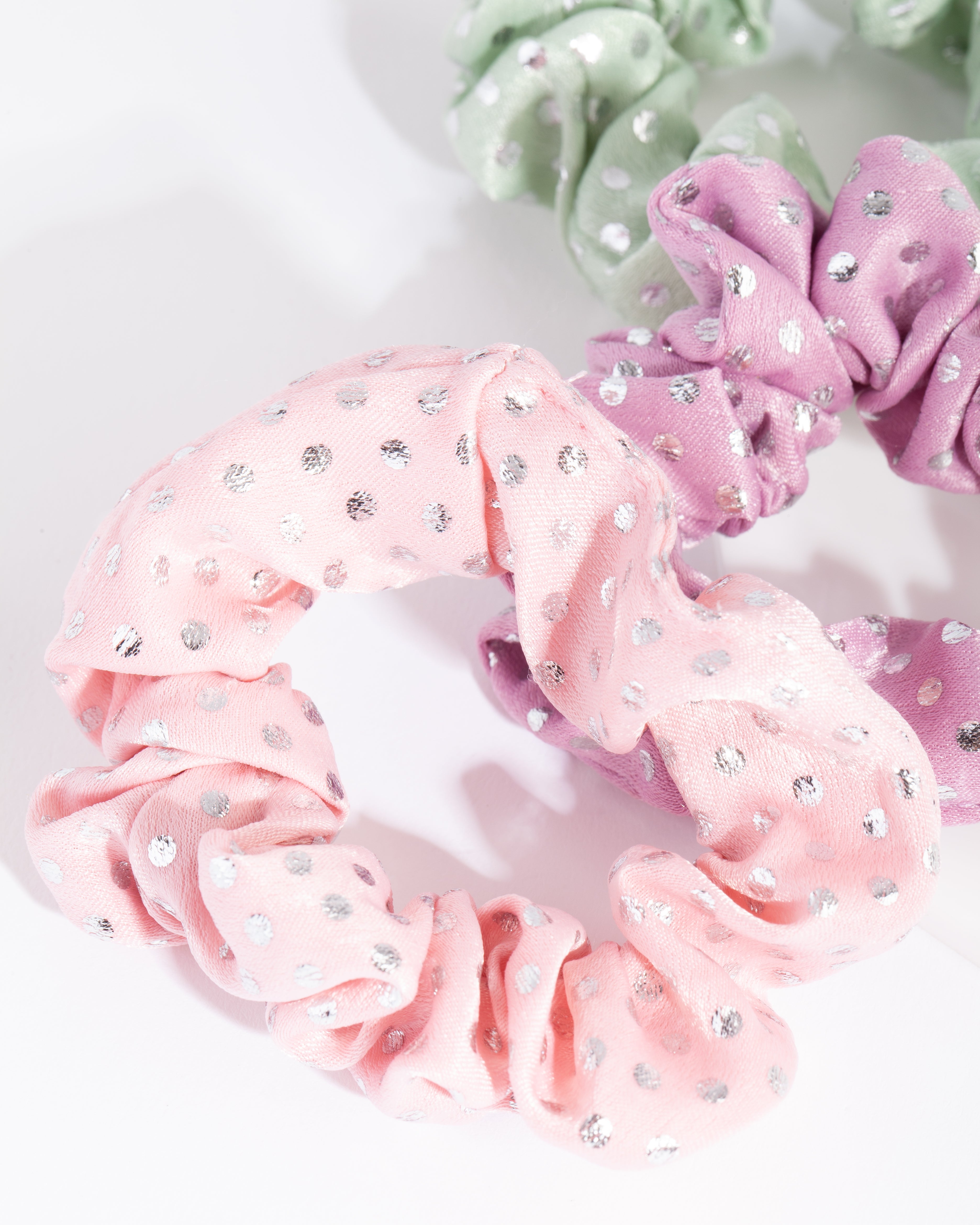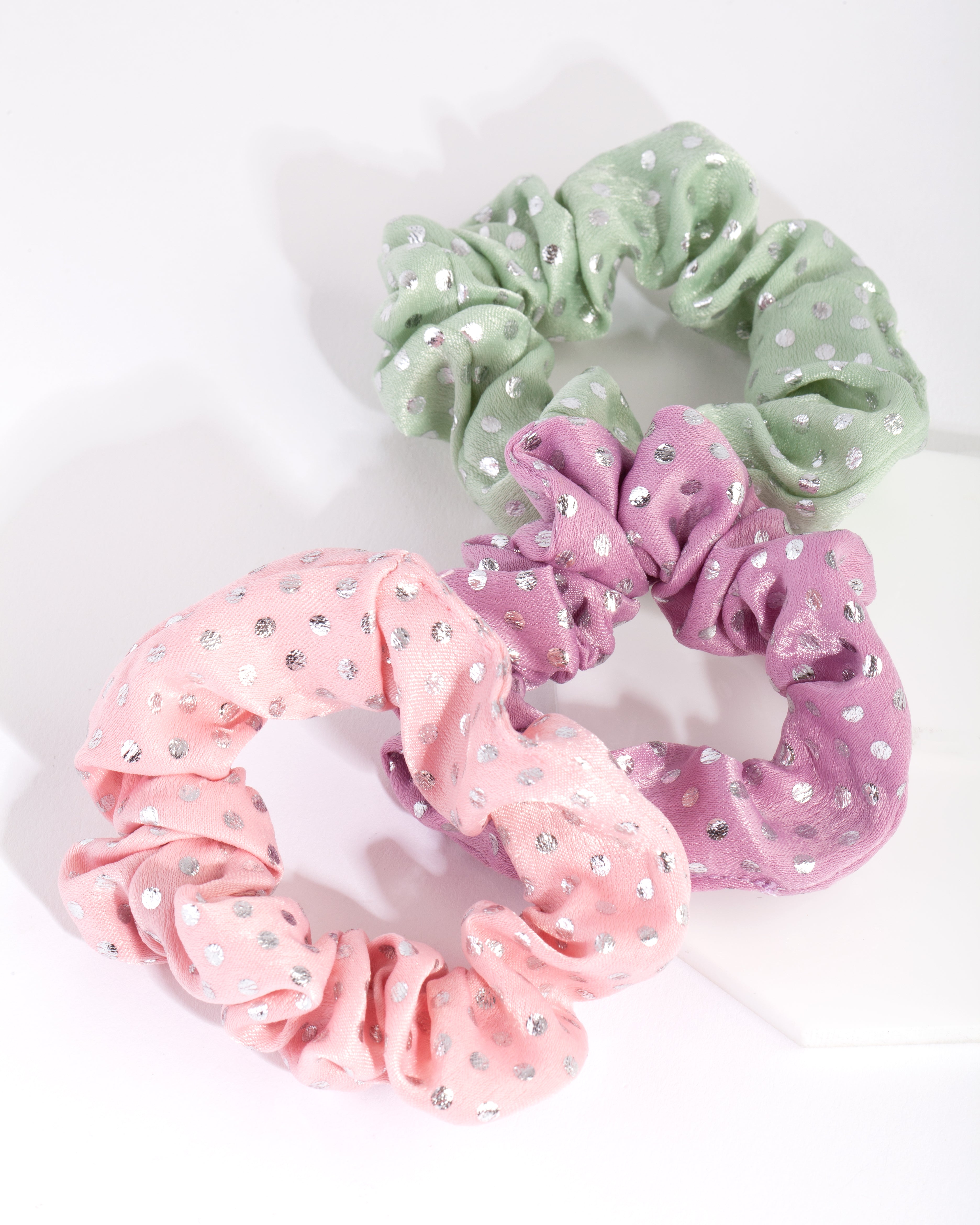 Add a pop of colour to your hairstyle with these multi coloured pastel polka dot scrunchies.