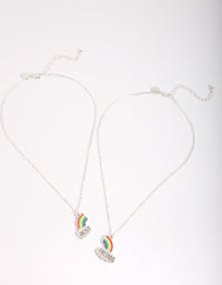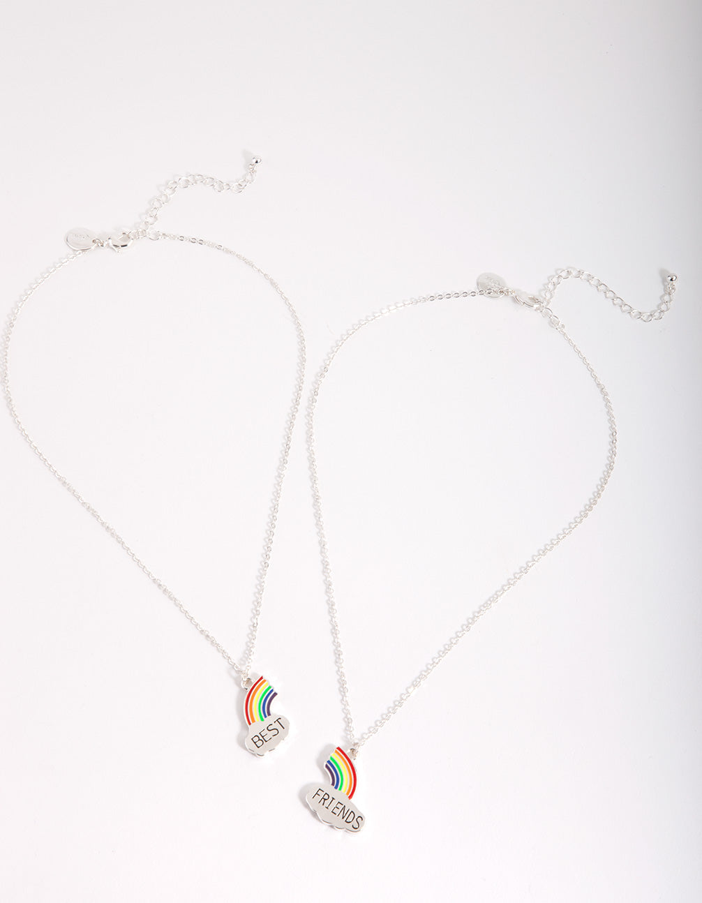 This range is perfect for little ones with big imaginations. This set features two necklace on silver-tone chains with rainbow best friend pendants. One for you and one for your best friend!