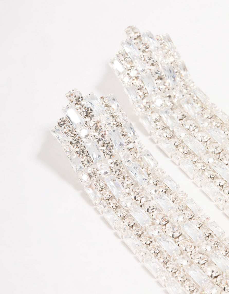 Stun with these silver-plated drop earrings, featuring cascading cup chain cubic zirconia strands. Perfect for cocktail events or adding glamour to casual outfits, they make a dazzling statement wherever you go!