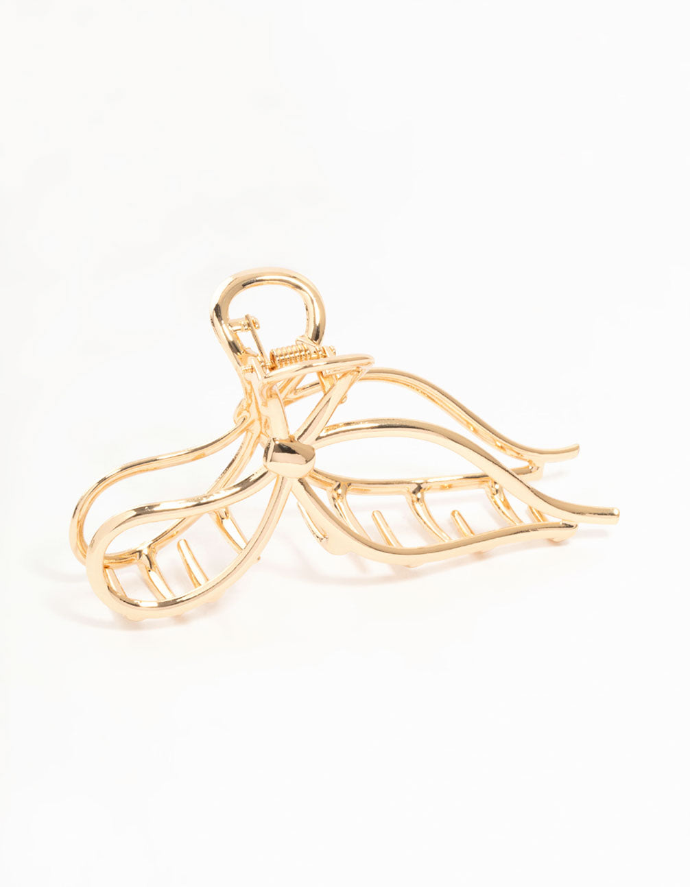 Upgrade your hair game with this exquisite gold-toned metal claw clip. This clip features an elegant open bow design and a touch of charming coquettish flair while effortlessly taming your tresses.