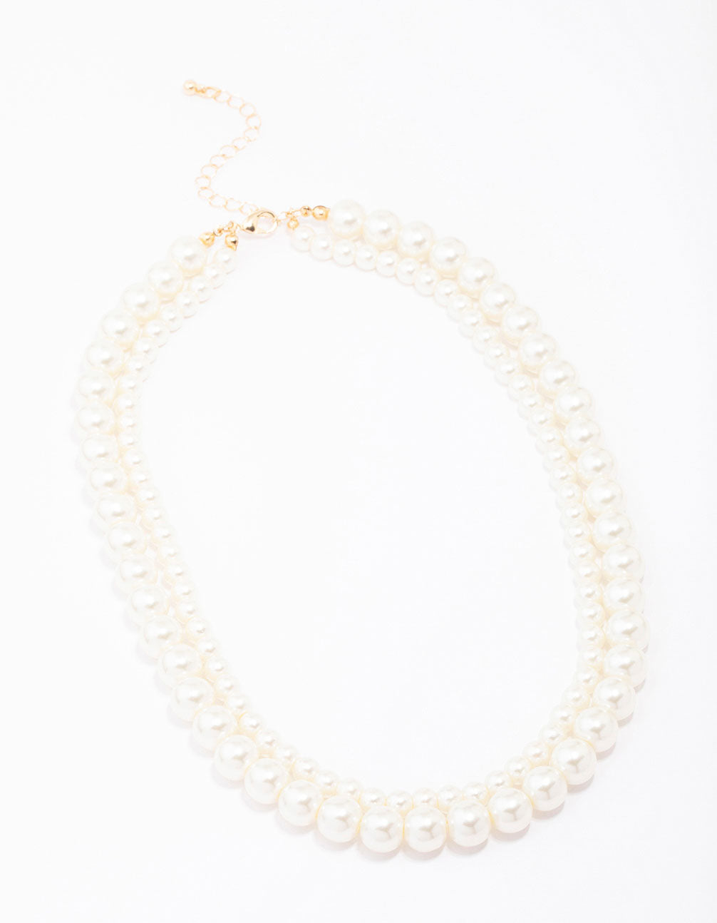 Elevate your stack with this chunky, layered necklace. This necklace features two rows of pearls in graduating sizes, perfect for adding dimension to your neckline.