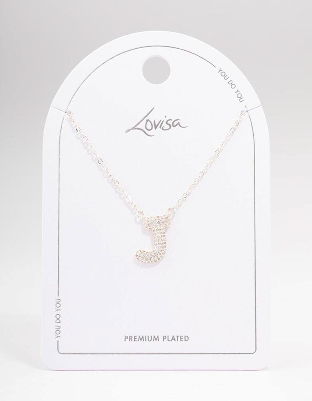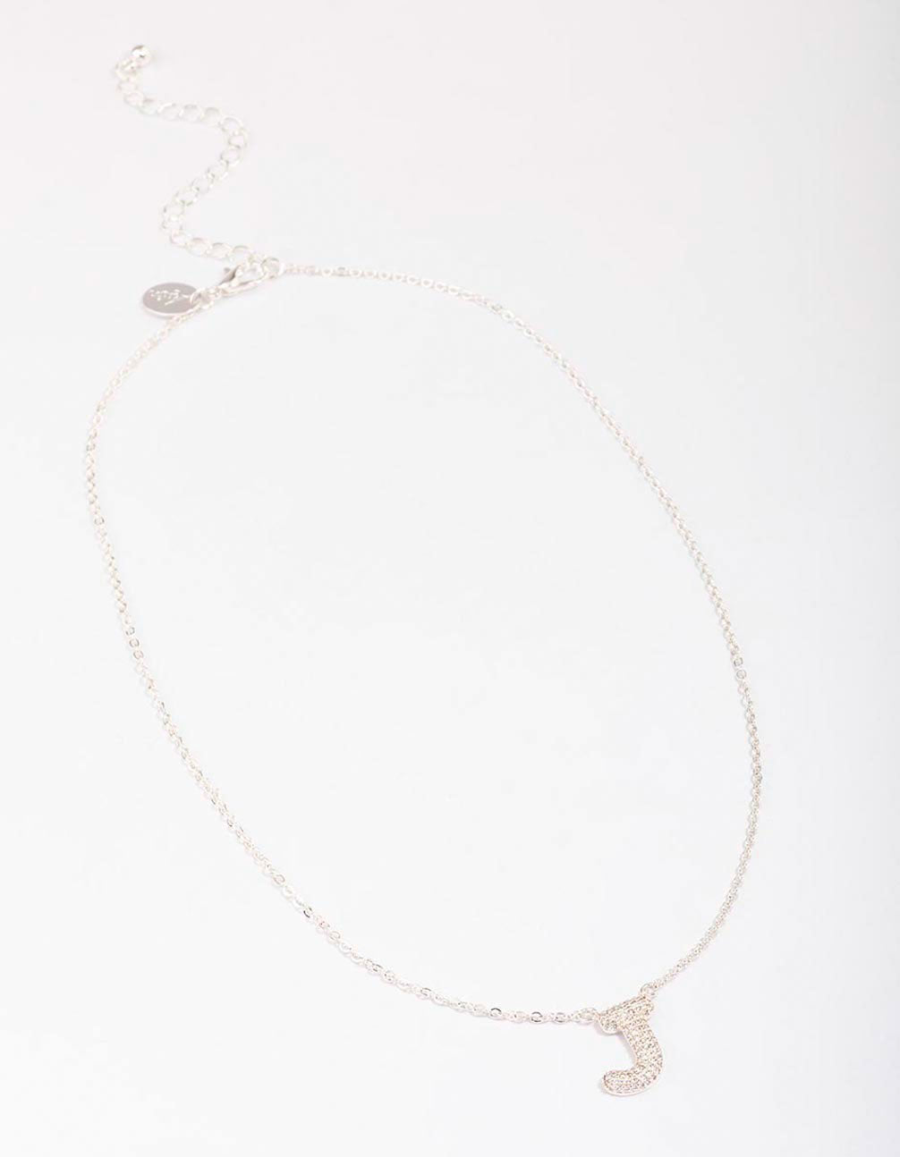 Letter J Silver Plated Pave Pendant Initial Necklace Letter J Silver Plated Pave Pendant Initial Necklace Letter J Silver Plated Pave Pendant Initial Necklace