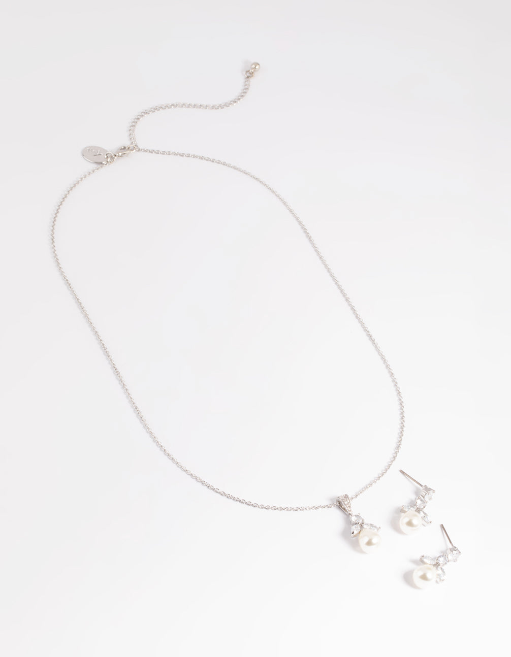 Silver Diamond Simulant Flower Pearl Necklace & Earrings Set