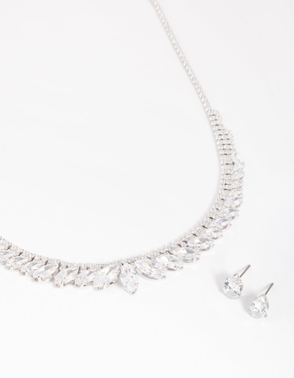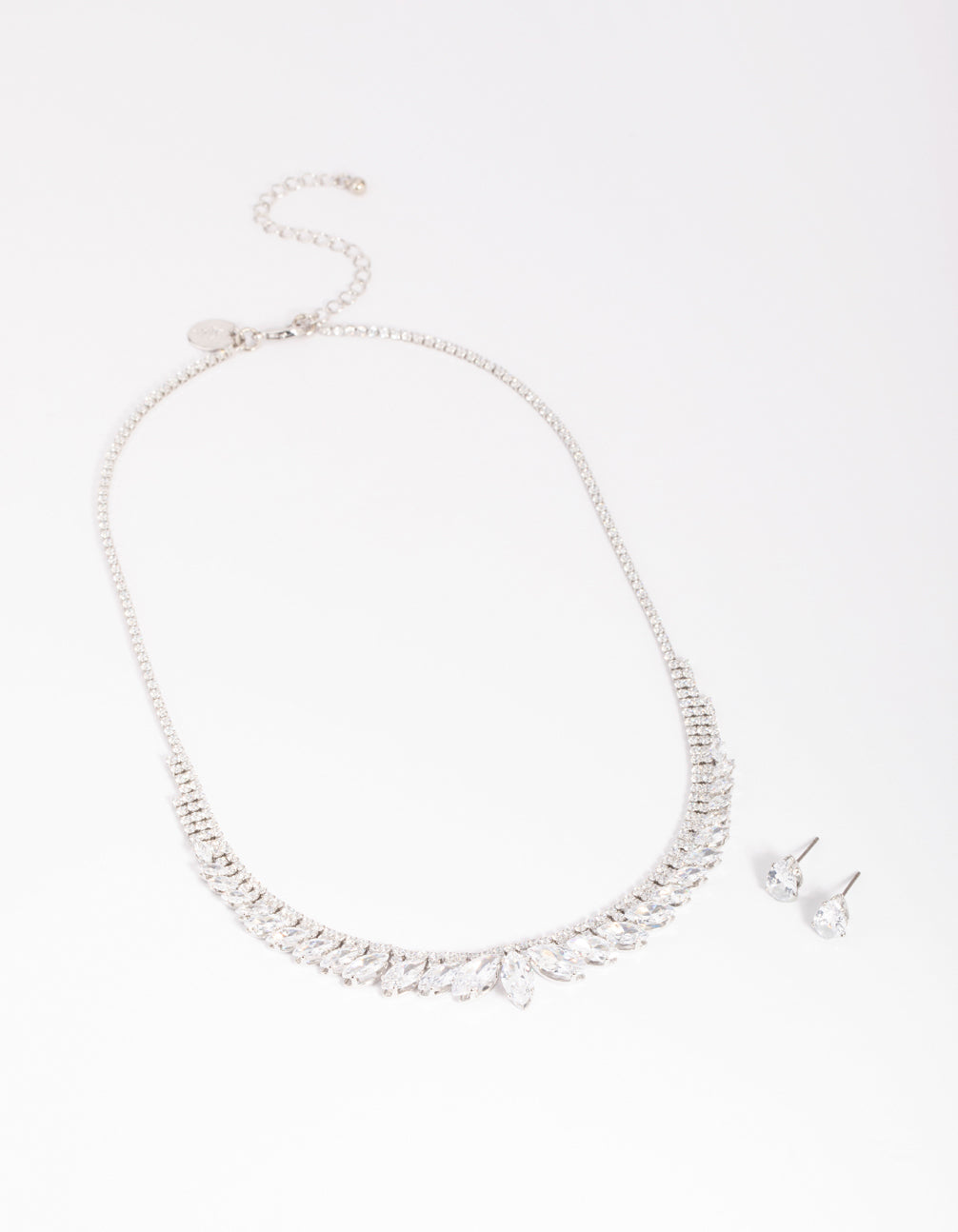 Silver Diamond Simulant Marquise Necklace & Earrings Set
