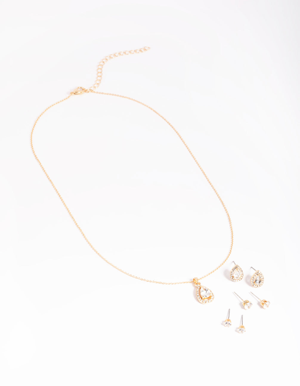Gold Diamond Simulant Diamante & Pearl Necklace & Earrings Set