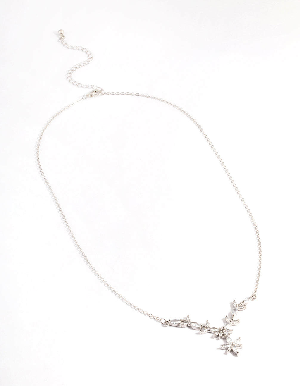 Silver Diamond Simulant Dainty Floral Necklace