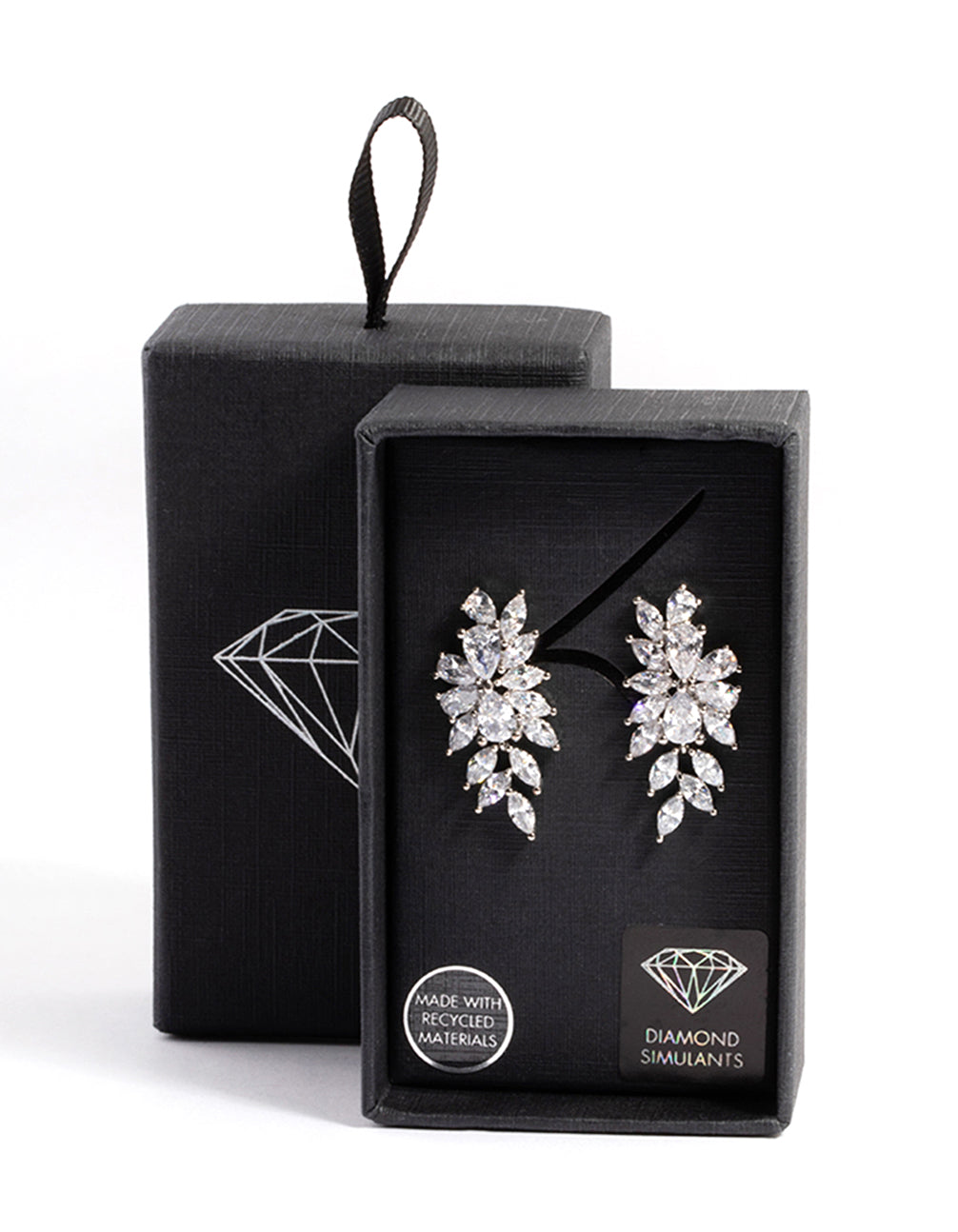Turn heads with these Silver Diamond Simulant Floral Drop Earrings, a stunning addition to any jewellery collection. These elegant drop earrings feature a delicate floral design adorned with sparkling diamond simulants, perfect for adding a touch of glamour to your outfit. Crafted with a silver-tone finish, they're ideal for a special occasion or a night out. Pair them with an evening dress for timeless sophistication or dress up a casual look with their dazzling charm. Whether you're searching for statement earrings, floral jewellery, or something sparkly for a wedding, these earrings tick all the boxes.