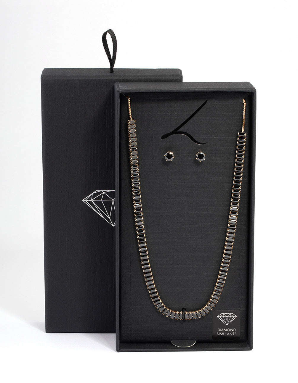 - This gold-toned jewellery set is perfect for completing any look! This jewellery set comes with a set of baguette styling earrings and a necklace to match.