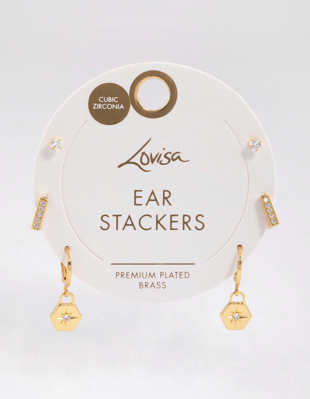• Gold Plated Brass Cubic Zirconia Hexagon & Square Earrings 6-Pack - link has visual effect only