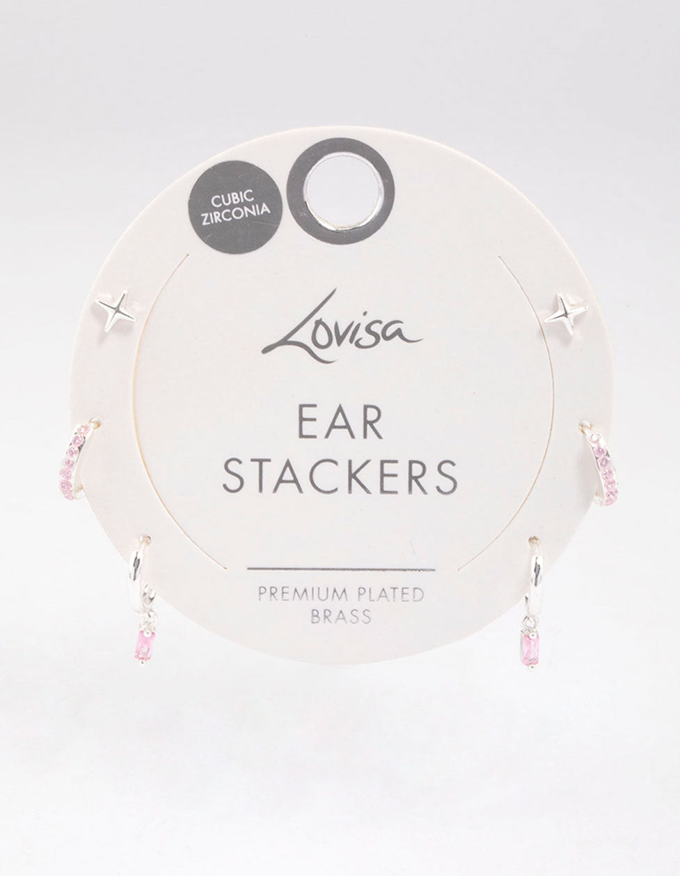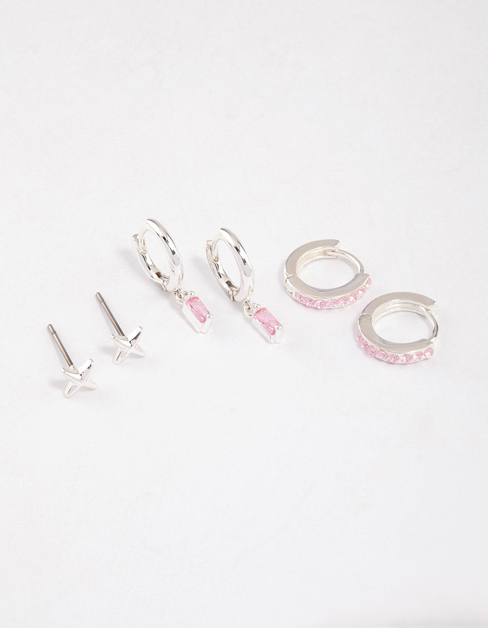 • This earring pack contains six earrings, designed with pink baguette stones for a Barbie-inspired look.