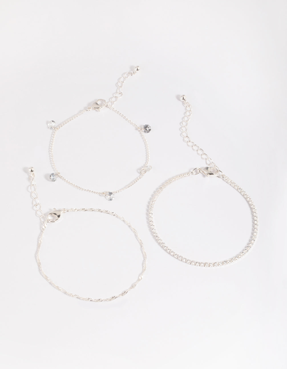 Silver Plated Brass Cubic Zirconia Charm Bracelet