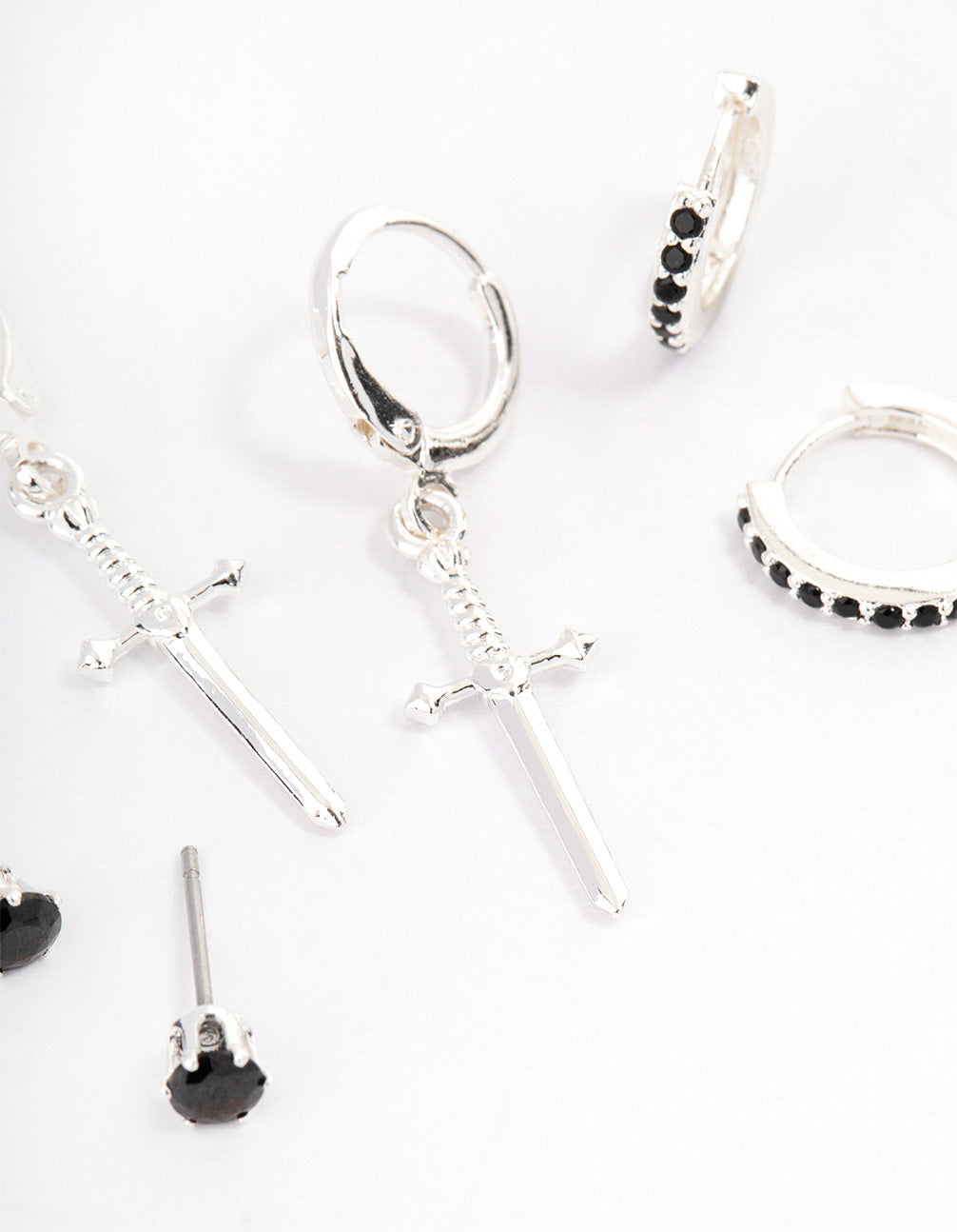 Silver Plated Brass Cubic Zirconia Dagger Huggie Earrings Pack