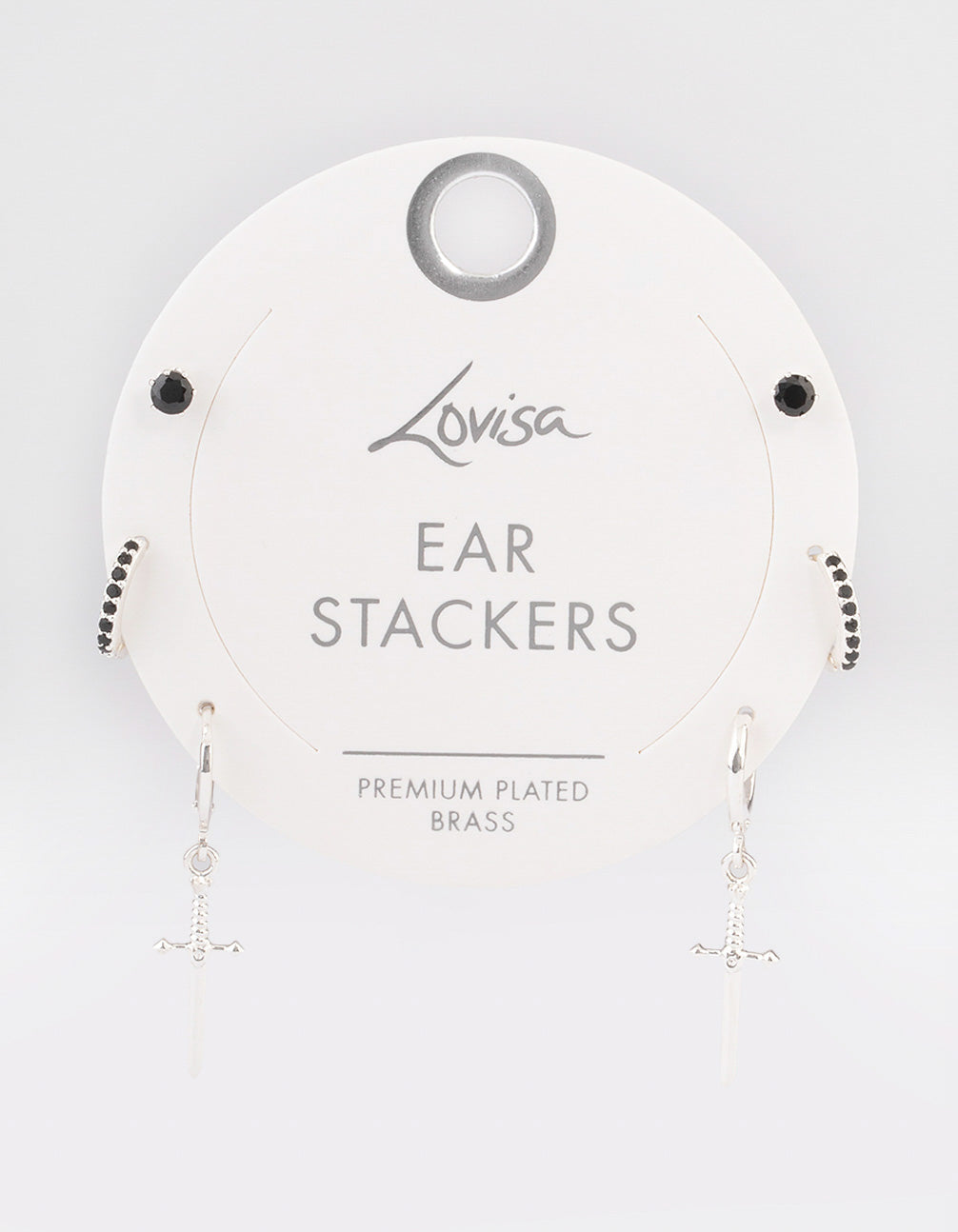 Treat yourself to luxury with jewellery from the Lovisa Luxe Collection! This set of three silver plated brass huggie hoop earrings are each adorned with a sparkling cubic zirconia dagger, adding a touch of edge to any outfit.