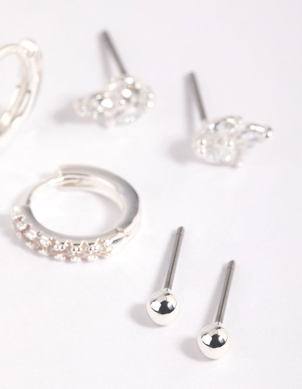 Silver Plated Brass Cubic Zirconia Leaf Earring Stack 6-Pack