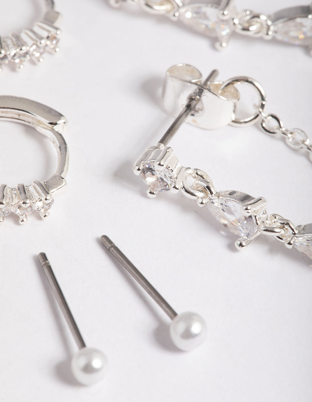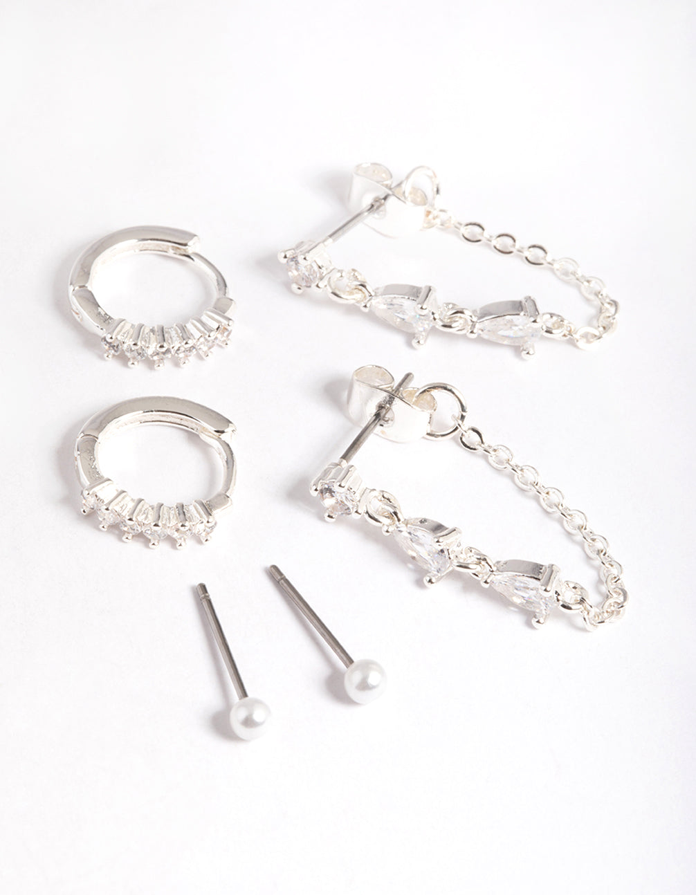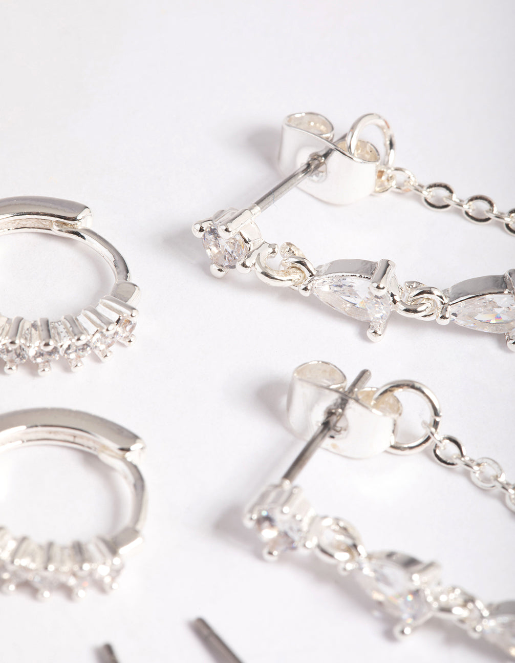 Silver Plated Brass Cubic Zirconia Pear Chain Earring 6-Pack